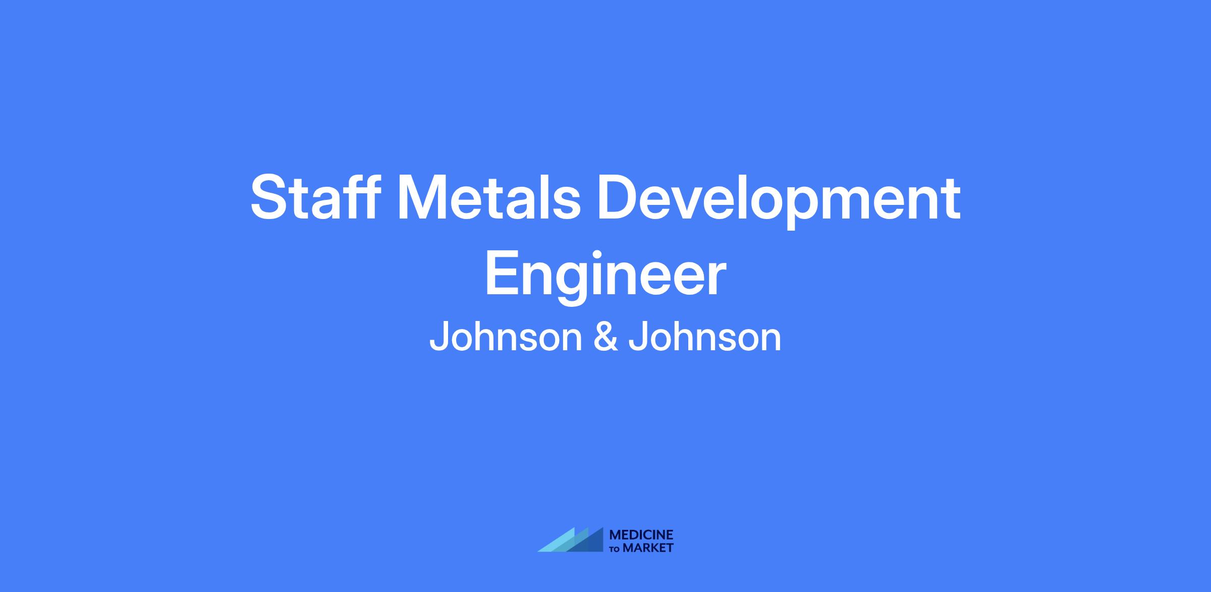 Staff Metals Manufacturing Development Engineer located in Cincinnati, OH. This role leads a technically specified project portfolio within MedTech manufacturing, driving innovation, supply reliability, and cost-down initiatives, while delivering launch excellence in new product innovation through cross-functional partnerships and robust technical strategies.