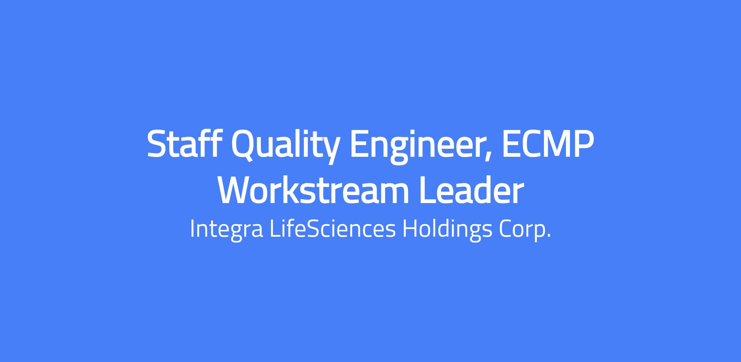 Changing lives. Building Careers. Joining us is a chance to do important work that creates change and shapes the future of healthcare. Thinking differently is what we do best. To us, change equals opportunity. Every day, our colleagues are challenging whatâs possible and making headway to innovate new treatment pathways to advance patient outcomes and set new standards of care. The Staff Quality Engineer, ECMP Work stream Leader is a key role within the Enterprise Compliance Master Plan (ECMP), having the responsibility of leading Change Control Work stream, which includes lifecycle management for product changes, and document controls for design and process documentation of the Quality Management System (QMS). This role will be responsible for leading a team of individuals and partnering with global quality leaders to develop processes that result in attaining the companyâs improvement objectives and growth strategies across more than 15 design, manufacturing, and distribution facilities and a diverse portfolio of leading medical devices. This role is crucial for ensuring the development, manufacture, and distribution of medical devices in compliance with corporate policies, U.S. Food and Drug Administration regulations, ISO 13485, the Canadian Medical Device Regulations (CMDR), the EU Medical Device Regulation, Japanese Pharmaceutical Affairs Law, and other applicable regulatory agencies. RESPONSIBILITIES: Drive standardization & deploy world-class solutions to drive improved quality and compliance. Recognized as a leading expert and internal thought leader in the designated QMS area with high-level knowledge and broad, comprehensive knowledge of other QMS disciplines. Leads major improvements to existing processes and develops or champions new systems, concepts, and procedures to solve unique and complex problems that have a broad impact on the business. Evaluate new regulations, guidelines and industry standards and their impact on ECMP QMS Workstream processes; plan and effectively implement plans across the business to maintain compliance. Establish a global community of practice for the designated QMS area or collaborate with responsible people to enhance the existing community of practice, including governance and oversight, to ensure compliance and consistency in relevant sub-processes applicable to the designated QMS area. Collaborate with process owners and stakeholders in corporate, divisions and sites to ensure the program is compliant, executable, and meets user needs. Ensure compliance of all process and digital improvements with all appropriate regulations and standards, including FDA, ISO 13485, CMDR, EU MDR and PMD Act. Interact and coordinate activities with other departments, external vendors, and customers. Influences and collaborates across stakeholder groups in the areas of process / system improvements, identify and implement opportunities. - Drive quality culture improvements and foster collaboration to ensure functional teams work harmoniously and secure synergy and strengths across the global teams. Provides strategic direction and communication of the ECMP QMS work stream goals, directives, and policies to employees, creating a clear vision and positive, team-oriented environment resulting in the achievement of the companyâs goals and increased profitability. Demonstrates technical leadership as an inter-departmental resource coaching and teaching other Integra Leaders across all functions and geographies. Perform other related duties as expected. QUALIFICATIONS: Bachelorâs Degree in Engineering, or Sciences or relevant Technical Field required. Masterâs degree preferred. Minimum 10 years of experience in quality, manufacturing, or engineering, or equivalent education and years of experience Strong experience leading deployment of enterprise quality management solutions Experience in FDA controlled environment. Strong collaboration and facilitation skills and experience working in a matrix environment. Ability to interface with technical and non-technical personnel. Knowledge of FDA QMSR, ISO, MDSAP, EU MDR, PMD Act and other applicable standards and regulations. This position could require up to 50% travel. PHYSICAL REQUIREMENTS The physical requirements listed in this section include, but are not limited, to the motor/physical abilities and skills require of position in order to successfully undertake the essential duties and responsibilities of this position. In accordance with the Americans with Disabilities Act (ADA), reasonable accommodations may be made to empower individuals with disabilities to undertake the essential duties and responsibilities of the position. ADVERSE WORKING CONDITIONS There are no adverse working conditions associated with this position. Salary Pay Range: $109,250.00 - $149,500.00 USD Salary Our salary ranges are determined by role, level, and location. Individual pay is determined by several factors including job-related skills, experience, and relevant education or training. In addition to base pay, employees may be eligible for bonus, commission, equity or other variable compensation. Your recruiter can share more about the specific salary range for your preferred location during the hiring process. Additional Description for Pay Transparency: Subject to the terms of their respective plans, employees and/or eligible dependents are eligible to participate in the following Company sponsored employee benefit programs: medical, dental, vision, life insurance, short- and long-term disability, business accident insurance, and group legal insurance, and savings plan (401(k)). Subject to the terms of their respective policies and date of hire, Employees are eligible for the following https://jobs.integralife.com/total-rewards/ Integra LifeSciences is an equal opportunity employer, and is committed to providing equal employment opportunities to all qualified applicants and employees regardless of race, marital status, color, religi