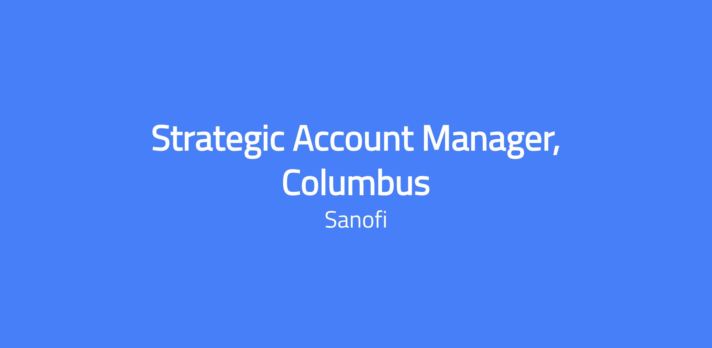 Strategic Account Manager, Columbus. Location: Remote/Field. You will support the Tzield program by connecting key stakeholders within accounts to enable decisions and implement solutions for administration. You will develop deep account knowledge, identify gaps in Tzield utilization, and collaborate with Sanofi teams to provide appropriate support. You will educate accounts on integration requirements and cross-department collaboration to enhance the patient experience.