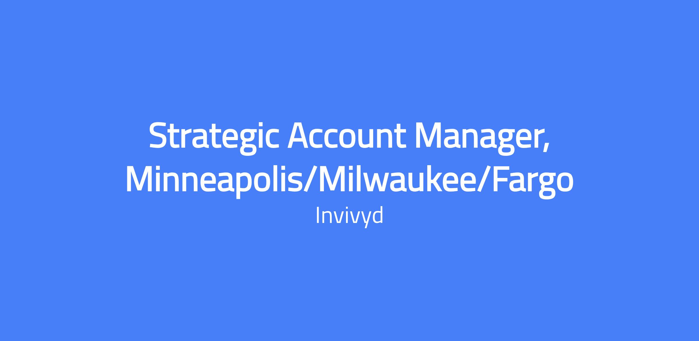 Join Invivyd as a Strategic Account Manager to help rapidly deliver antibody-based therapies that protect vulnerable people from circulating viral threats. This role executes territory business plans and educates on approved messages to a variety of customers. Location: Remote, Minneapolis or Milwaukee metropolitan area preferred; covers North Dakota, South Dakota, Minnesota, Wisconsin, and Iowa.