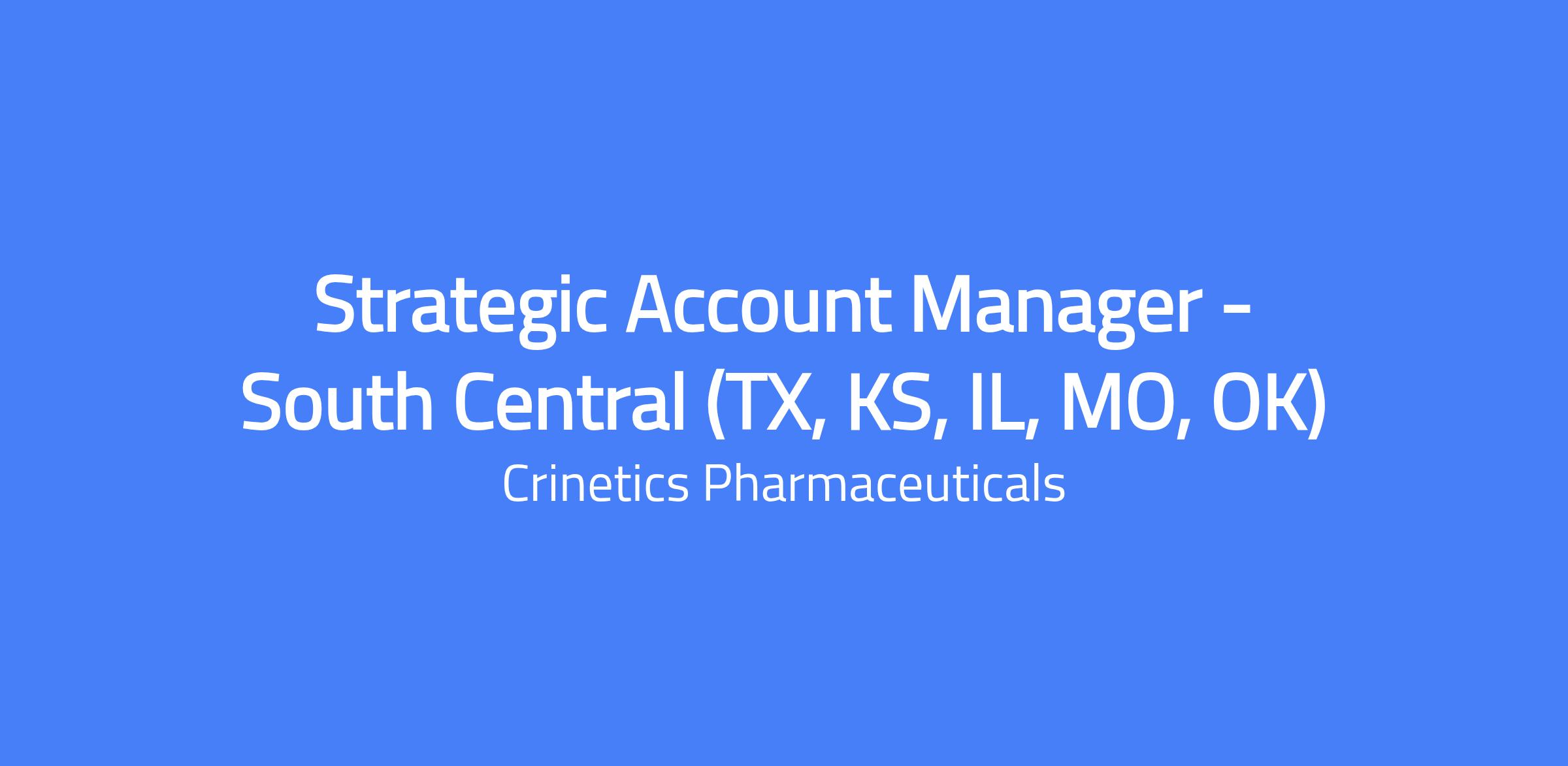 Strategic Account Manager - South Central will drive adoption of Crinetics’ therapies within a defined territory by building trusted relationships with physicians, managed care organizations, and healthcare systems. You will gain deep insights into the patient journey for rare diseases and deliver messages and programs that address needs, access barriers, and care gaps. This role blends commercial excellence with patient-centric purpose and requires collaboration with cross-functional teams to maximize impact on patient outcomes.