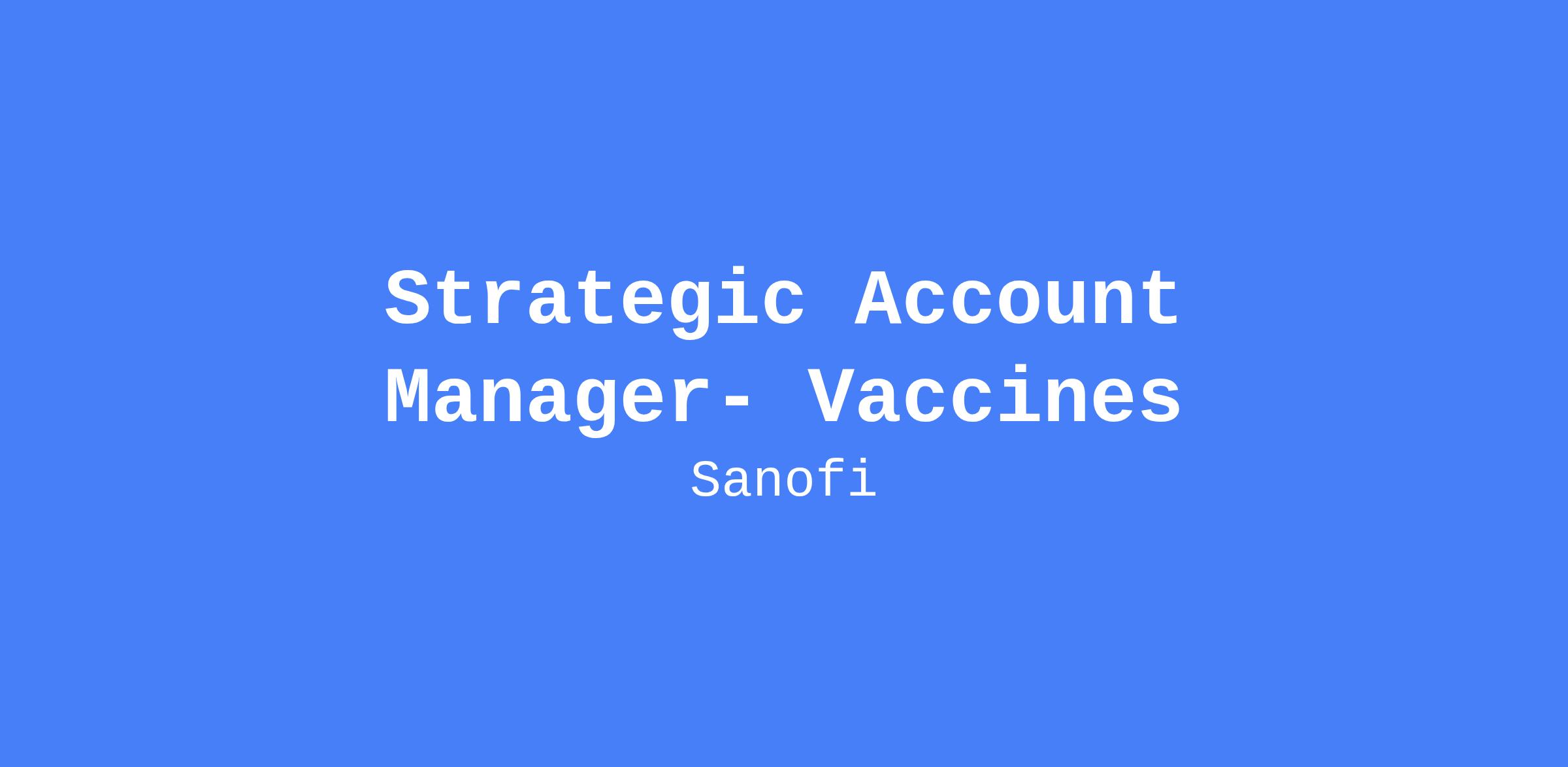 Strategic Account Manager- Vaccines responsible for leading and growing strategic accounts in the vaccines space, managing cross-functional resources, and building account plans to drive value and meet revenue targets. The role focuses on Health Systems, IHNs, Medical Groups, PBGs, FQHCs and state Awardees, with national coverage opportunities.