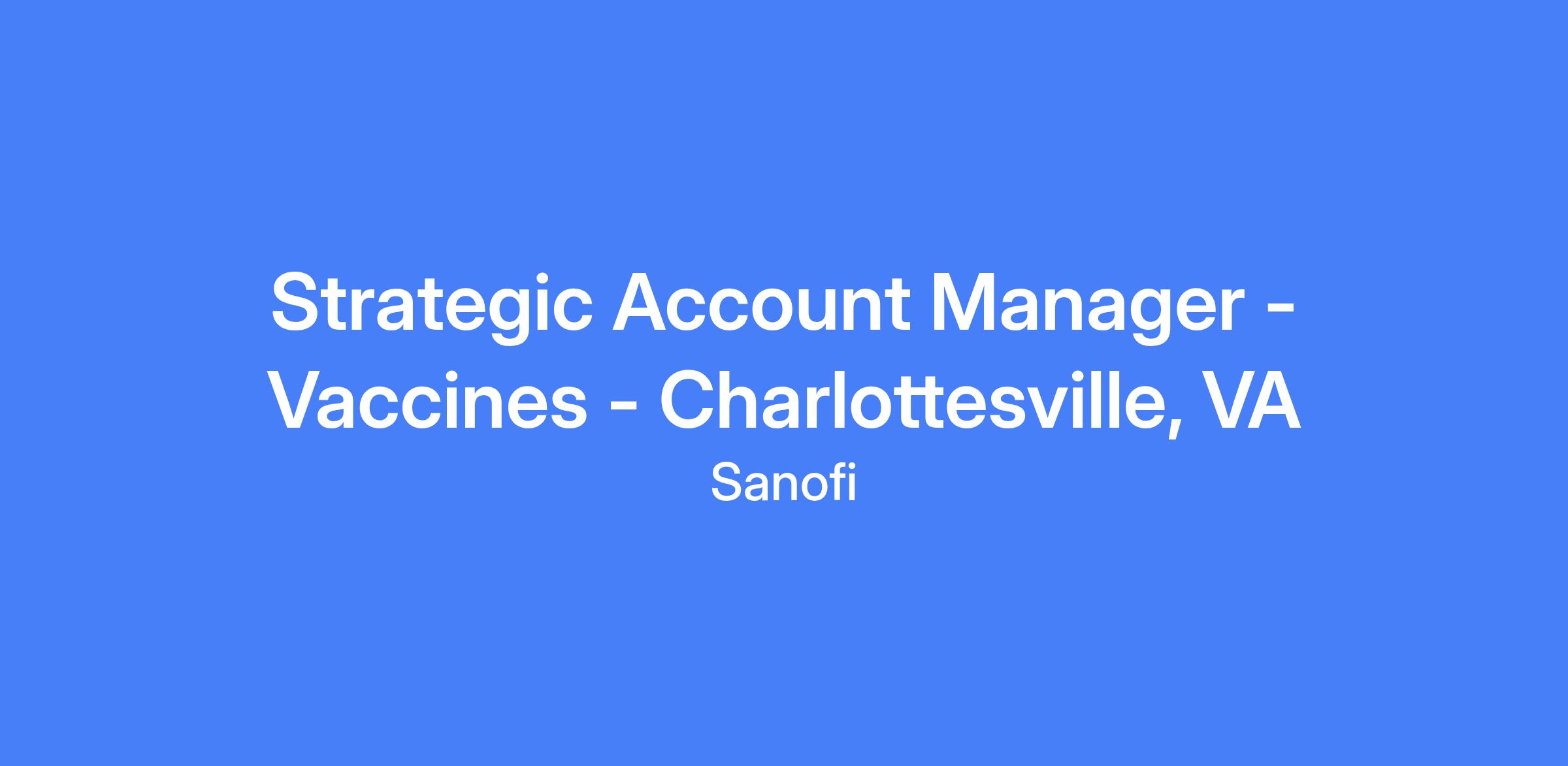 Strategic Account Manager for vaccines, focusing on Sanofi’s largest and most complex customers and high-value vaccine contracts. The role requires leading account strategies, building strategic plans, and coordinating cross-functional resources to drive value and meet revenue targets. Remote/field-based in Charlottesville, VA.