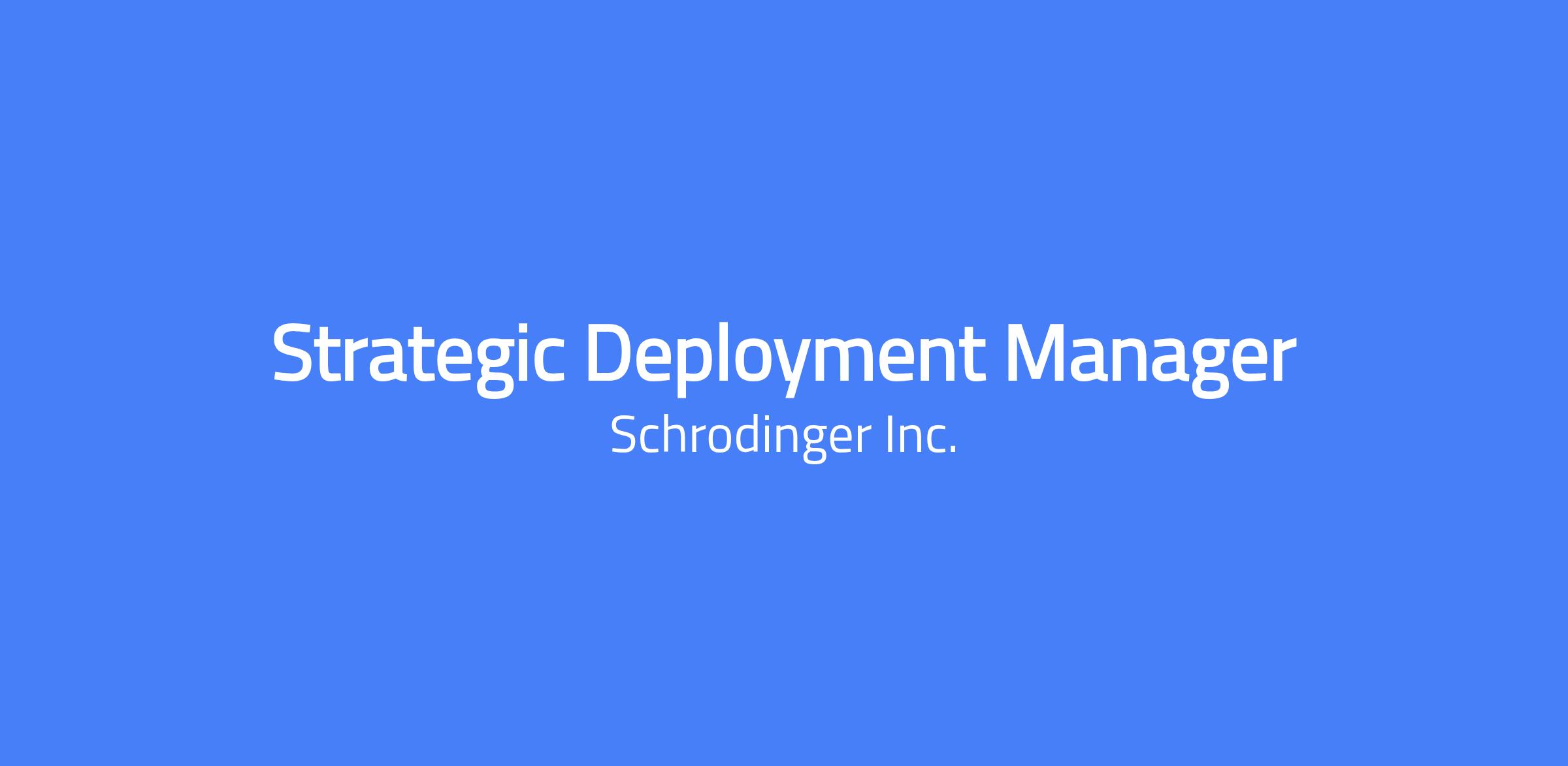 Schrödinger is a leading computational science company headquartered in New York, NY, pioneering the use of physics-based molecular simulation and machine learning to accelerate drug discovery and materials design for the world's top pharmaceutical and biotech organizations. Schrödinger KK, a Japanese subsidiary of Schrödinger, is looking to hire a Strategic Deployment Manager to join us in our mission to improve health and quality of life through the development, distribution, and application of advanced computational methods! Â