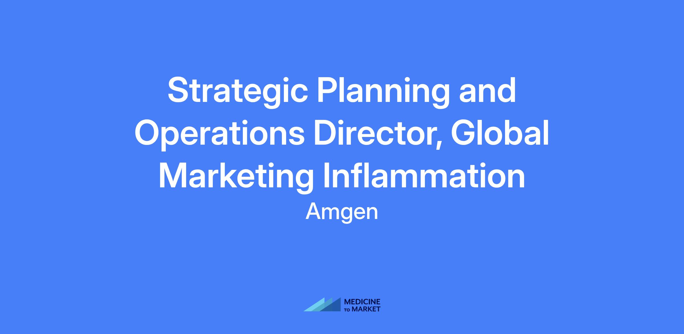 Strategic Planning and Operations Director, Global Marketing Inflammation will partner with the Vice President, Global Marketing – Inflammation to shape portfolio strategy and drive day-to-day operations for Amgen’s inflammation portfolio. This role leads cross-functional collaboration, drives operational excellence, and influences growth across inline and pipeline programs in a high-visibility therapeutic area.