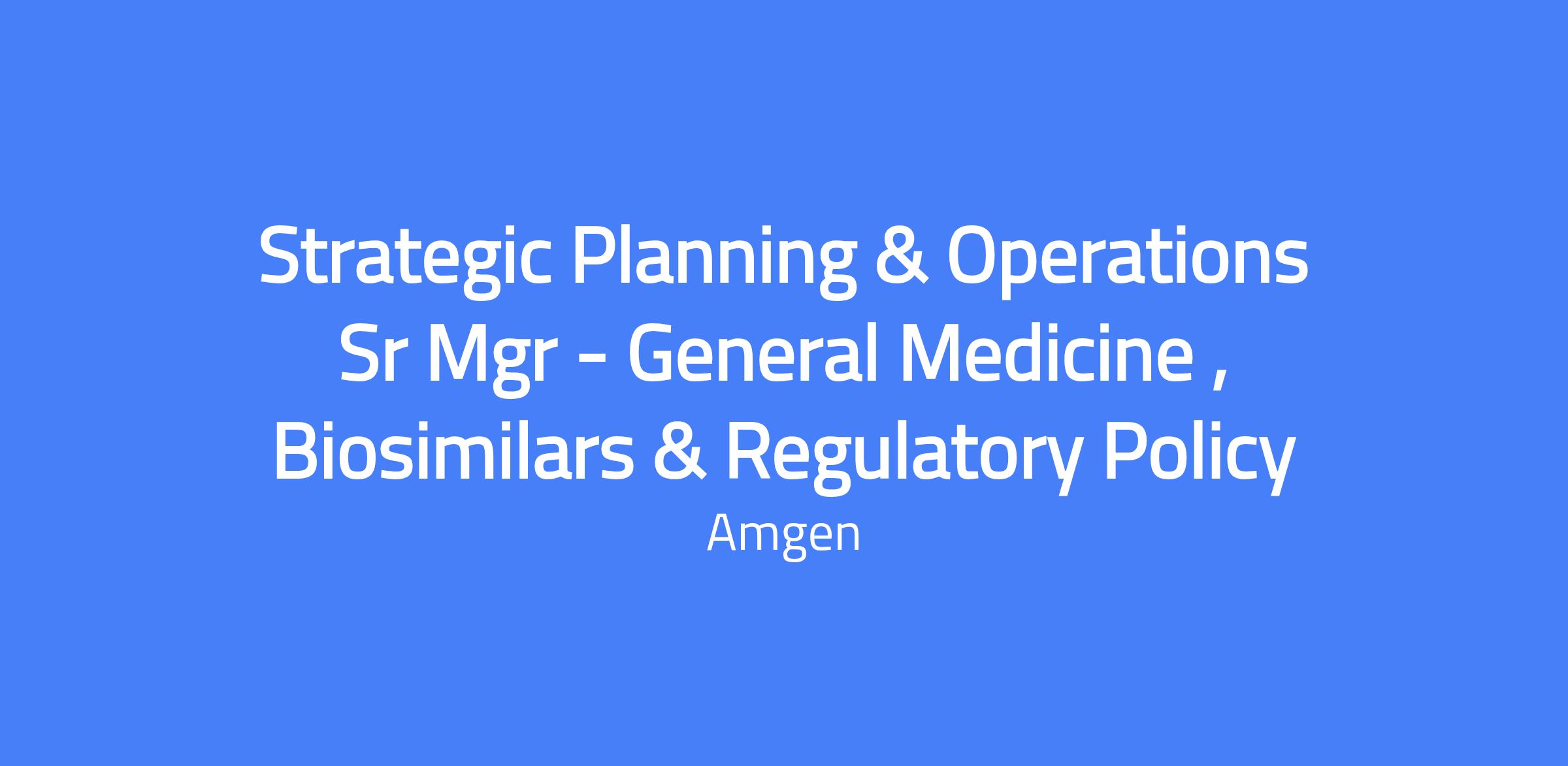 In this strategic and operational role, you will partner with Global Regulatory Affairs and Strategy (GRAAS) Strategic Planning and Operations (SPO) Sr Managers to provide flexible, high-impact support across Amgen’s Regulatory Affairs organization, driving department goals and initiatives and collaborating cross-functionally. Your primary focus is to support the Biosimilars and General Medicine therapeutic area VP and teams, and the Global Regulatory Policy & Intelligence (GRPI) AVP and teams, ensuring effective planning, governance, communication, and execution of priorities. The Senior Manager, Strategic Planning & Operations, serves as a strategic and operational partner to senior Regulatory leadership.