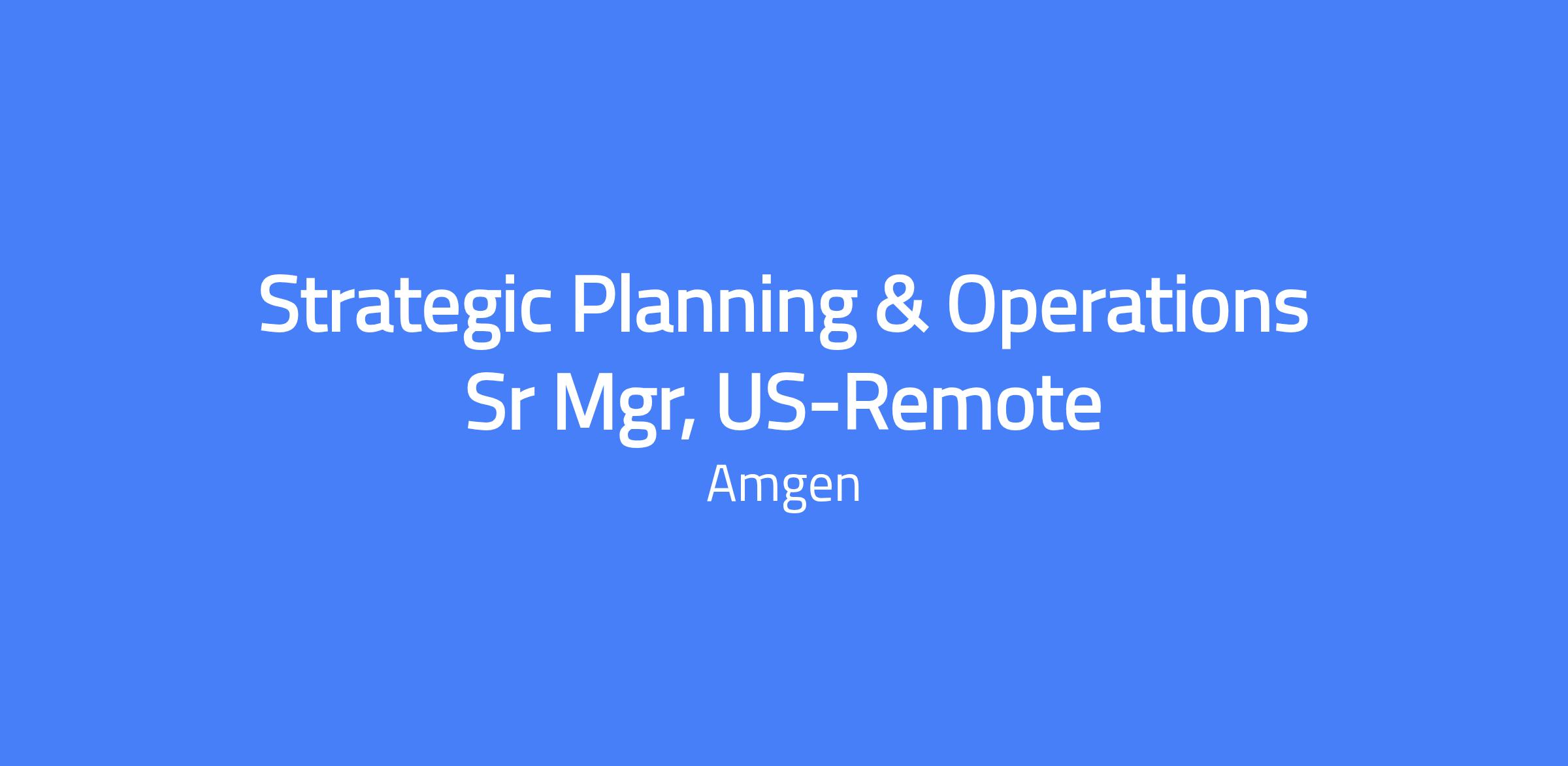 Strategic Planning & Operations Sr Mgr, US-Remote