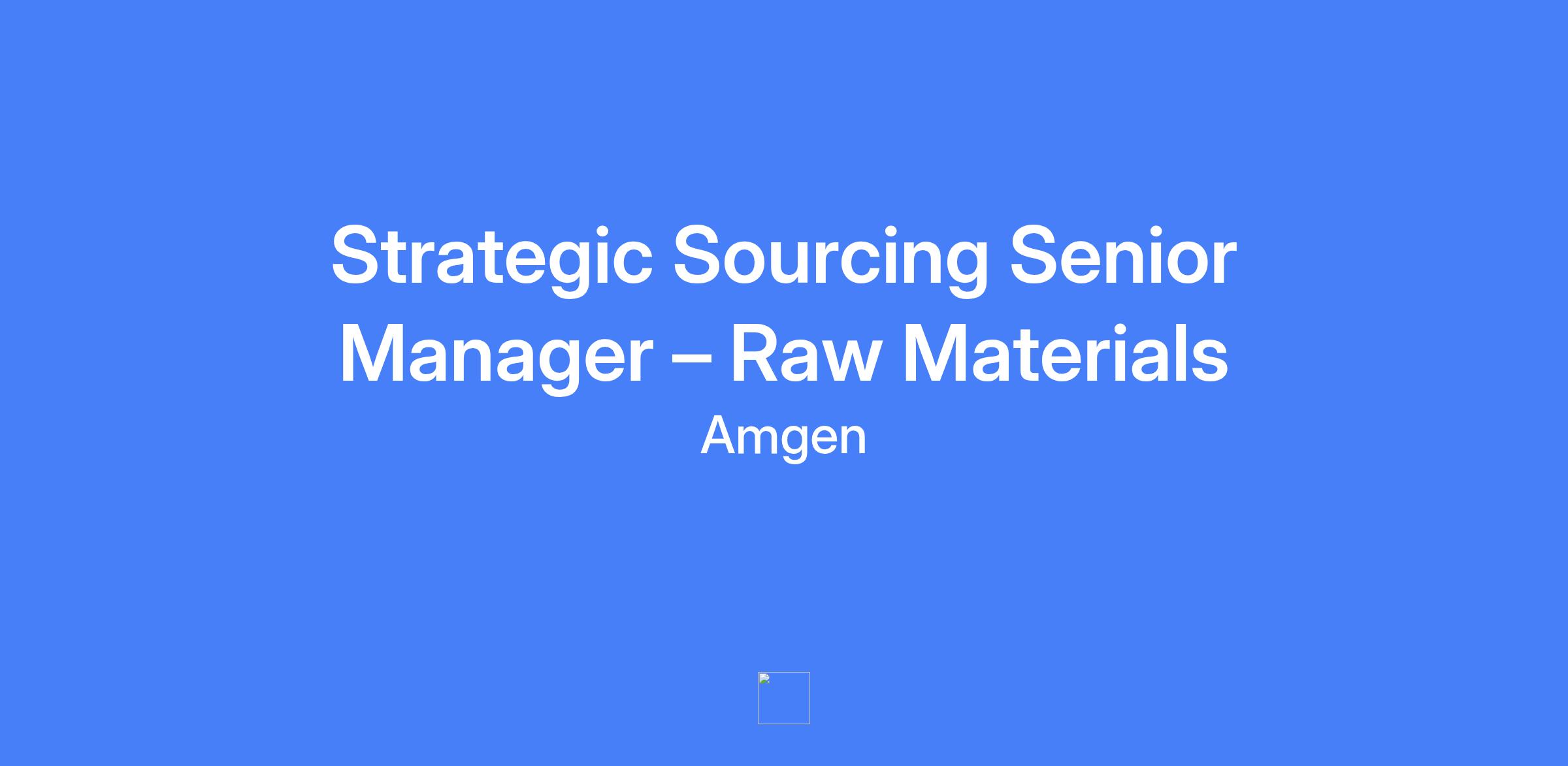 Strategic Sourcing Senior Manager – Raw Materials. Lead the global sourcing strategy for raw materials, including identification, evaluation, and negotiations with suppliers to ensure efficient and effective sourcing solutions that support organizational goals. Develop Strategic Sourcing Go-To-Market planning aligned to Business and Category Strategies, conduct in-depth market analysis, manage the sourcing process, collaborate with cross-functional stakeholders, and engage with suppliers to achieve optimal terms and performance.