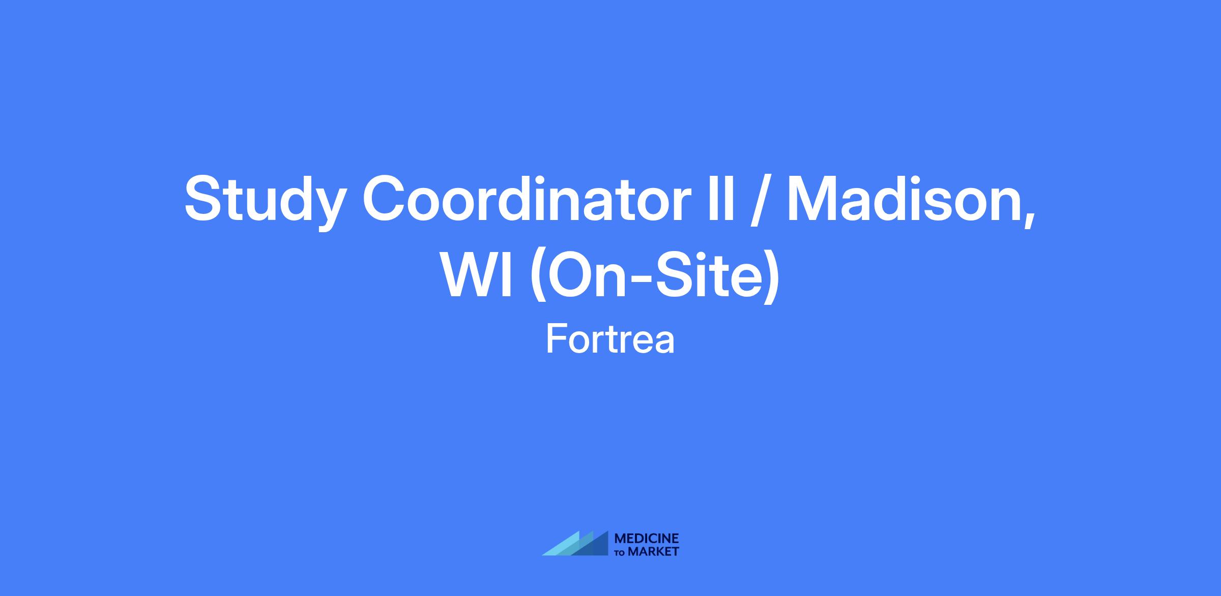 Study Coordinator II, Madison, WI (On-Site) βΓΓ¬ office/clinic-based role supporting clinical research trials and interacting with healthy volunteer participants within a fast-paced, team-oriented environment.