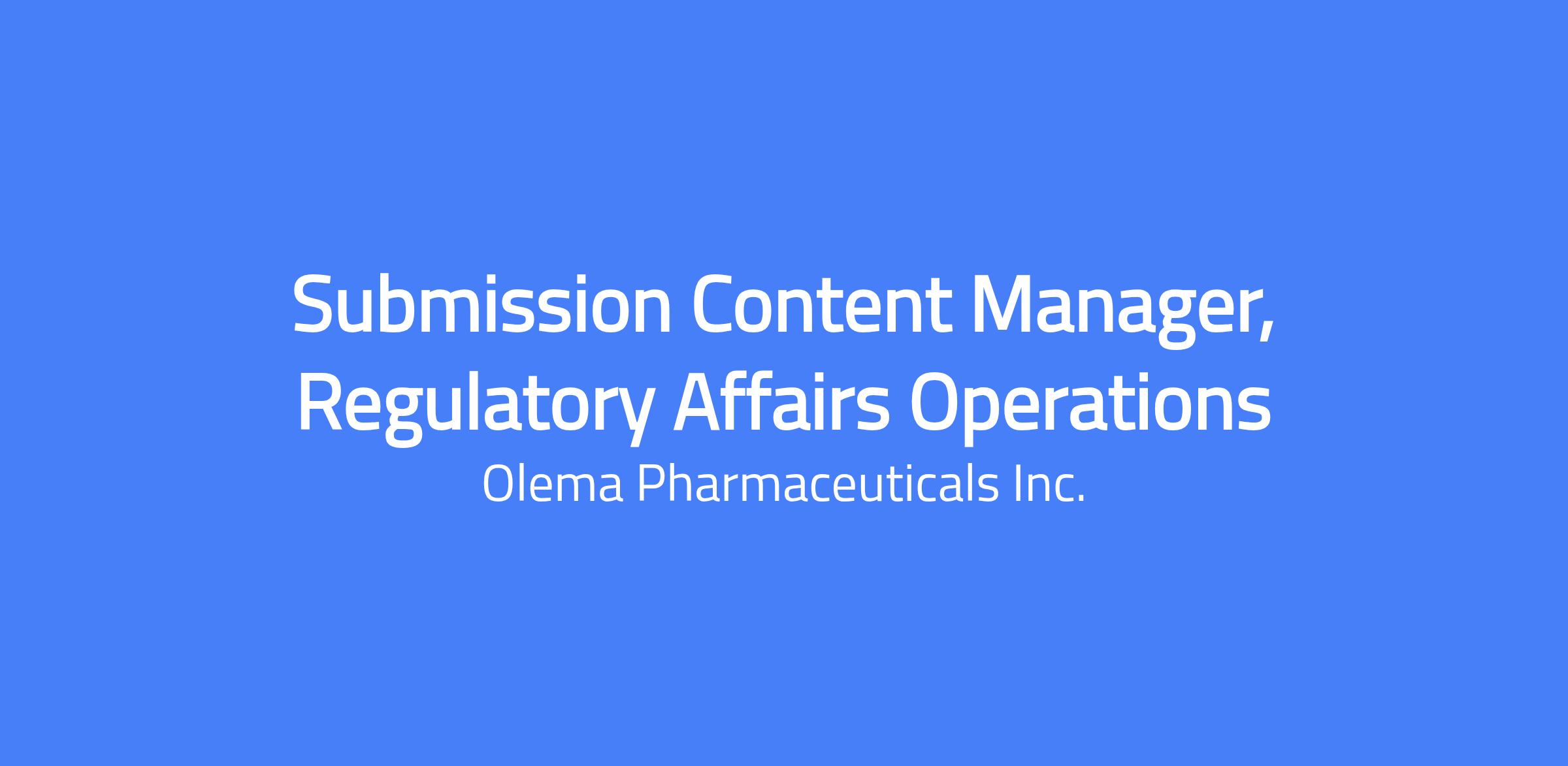 About the Role >>> Submission Content Manager, Regulatory Operations