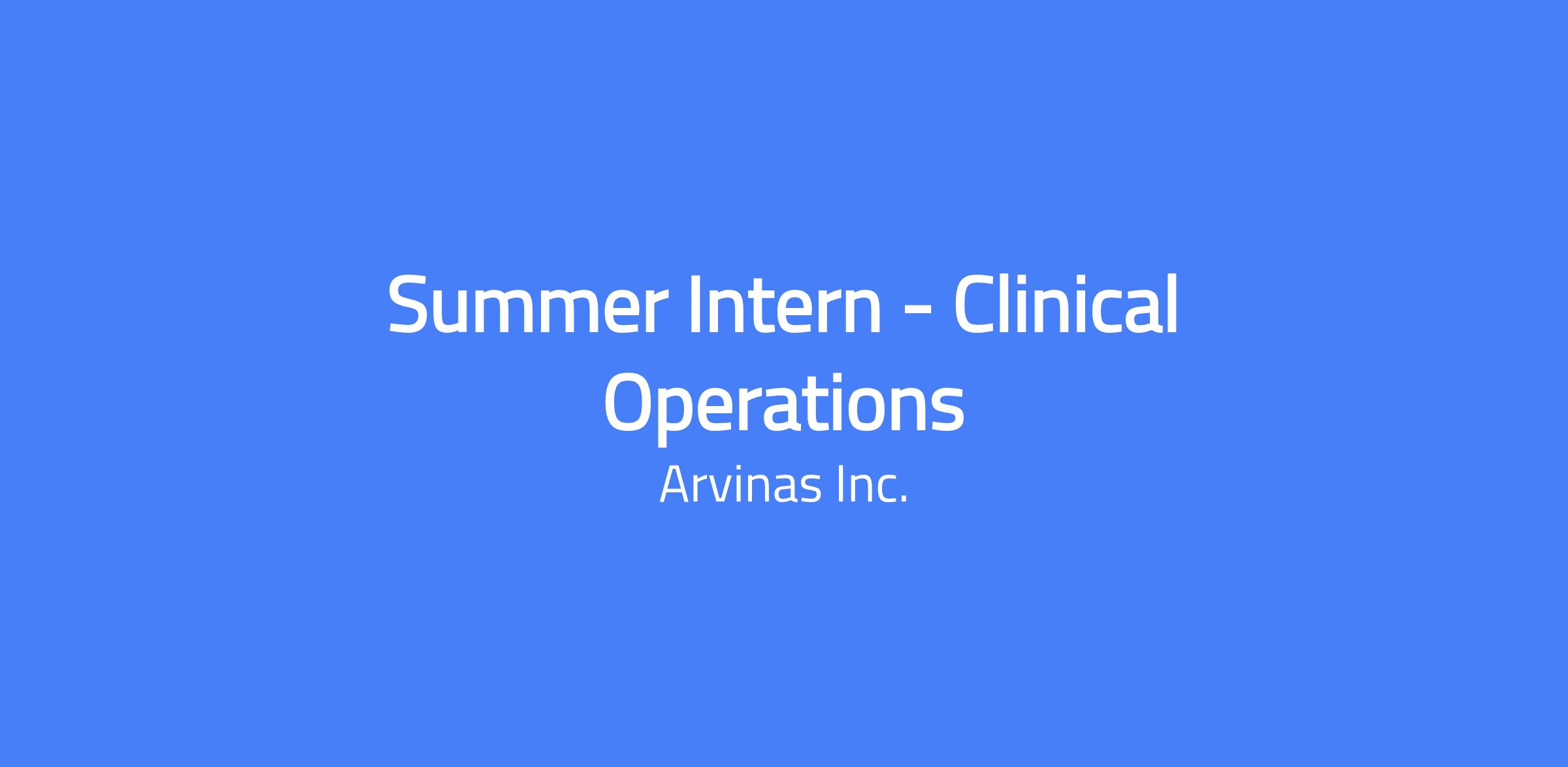 Arvinas has an excellent opportunity for a summer internship in our Clinical Operations function to gain exposure, training, and experience supporting the following activities: