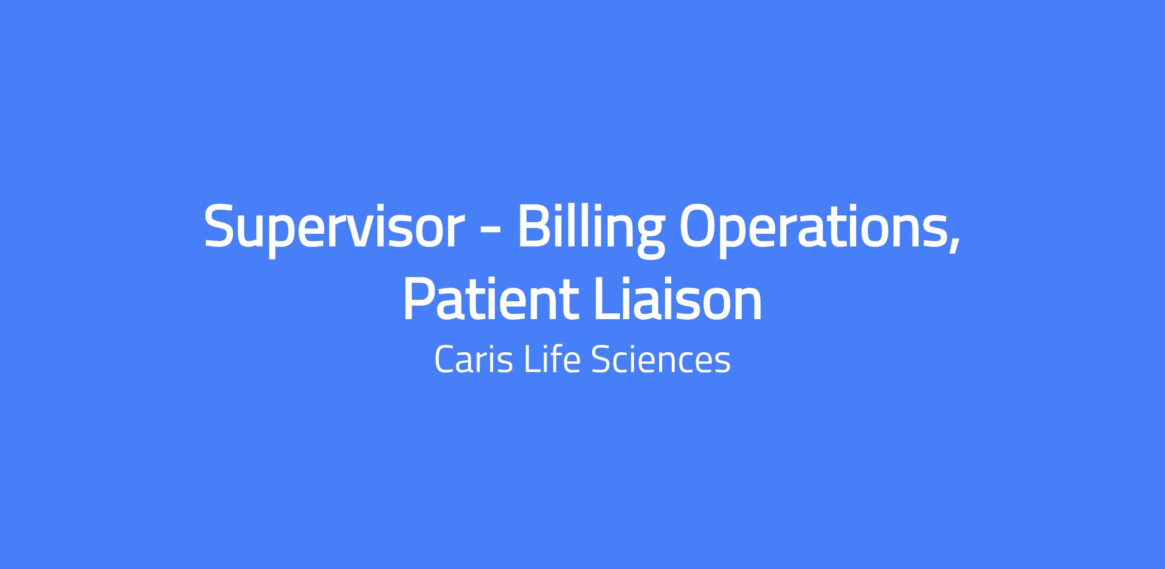 Caris Life Sciences is seeking a full-time Patient Liaison Supervisor responsible for resolving issues, directing patient inquiries or complaints, facilitating satisfactory resolutions, and following up to ensure issues have been resolved for specific accounts. The Supervisor acts as a first-line leader, providing coaching, guidance, and operational support to achieve departmental and organizational goals while explaining our services to patients during this difficult time in their life.