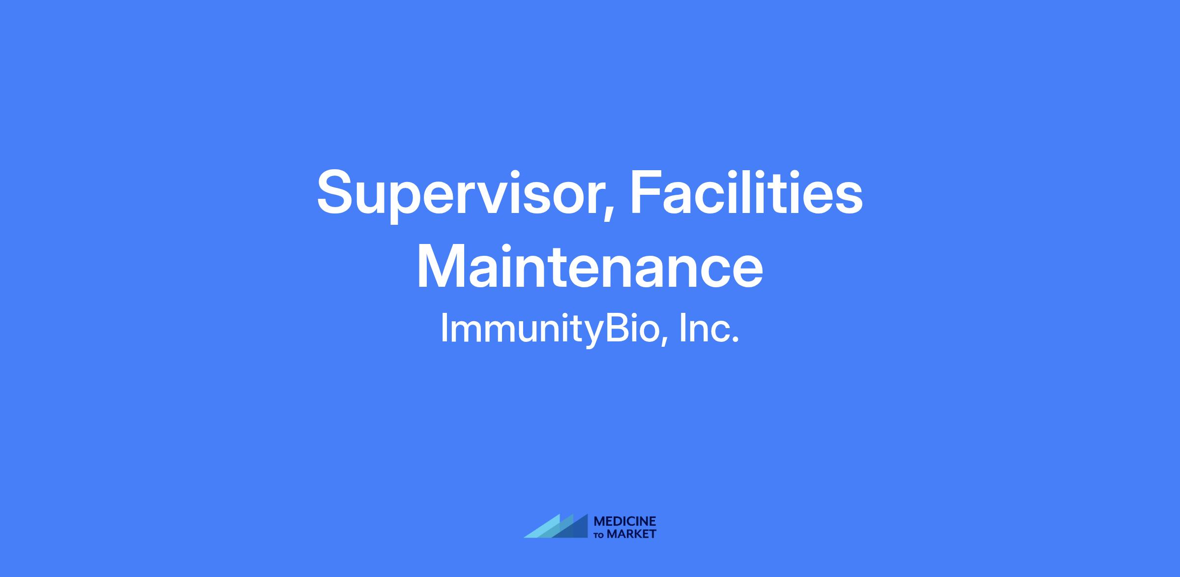The Supervisor, Facilities Maintenance will supervise and direct the facilities maintenance, calibration and metrology team; and manage the maintenance, preventive/corrective maintenance and upkeep of manufacturing and production assets for multiple locations. The role will participate in cross functional teams to ensure ImmunityBio’s expectations and standards are maintained.