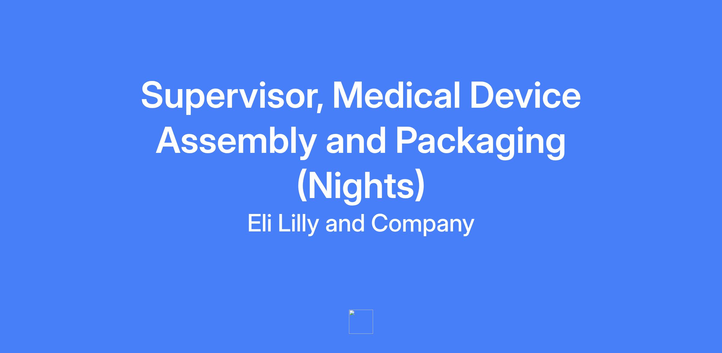 Supervisor, Medical Device Assembly and Packaging (Nights) at Lilly, responsible for leading the Device Assembly and Packaging (DAP) area during start-up and after turnover to operations, ensuring safety, quality, and staffing of trained personnel.
