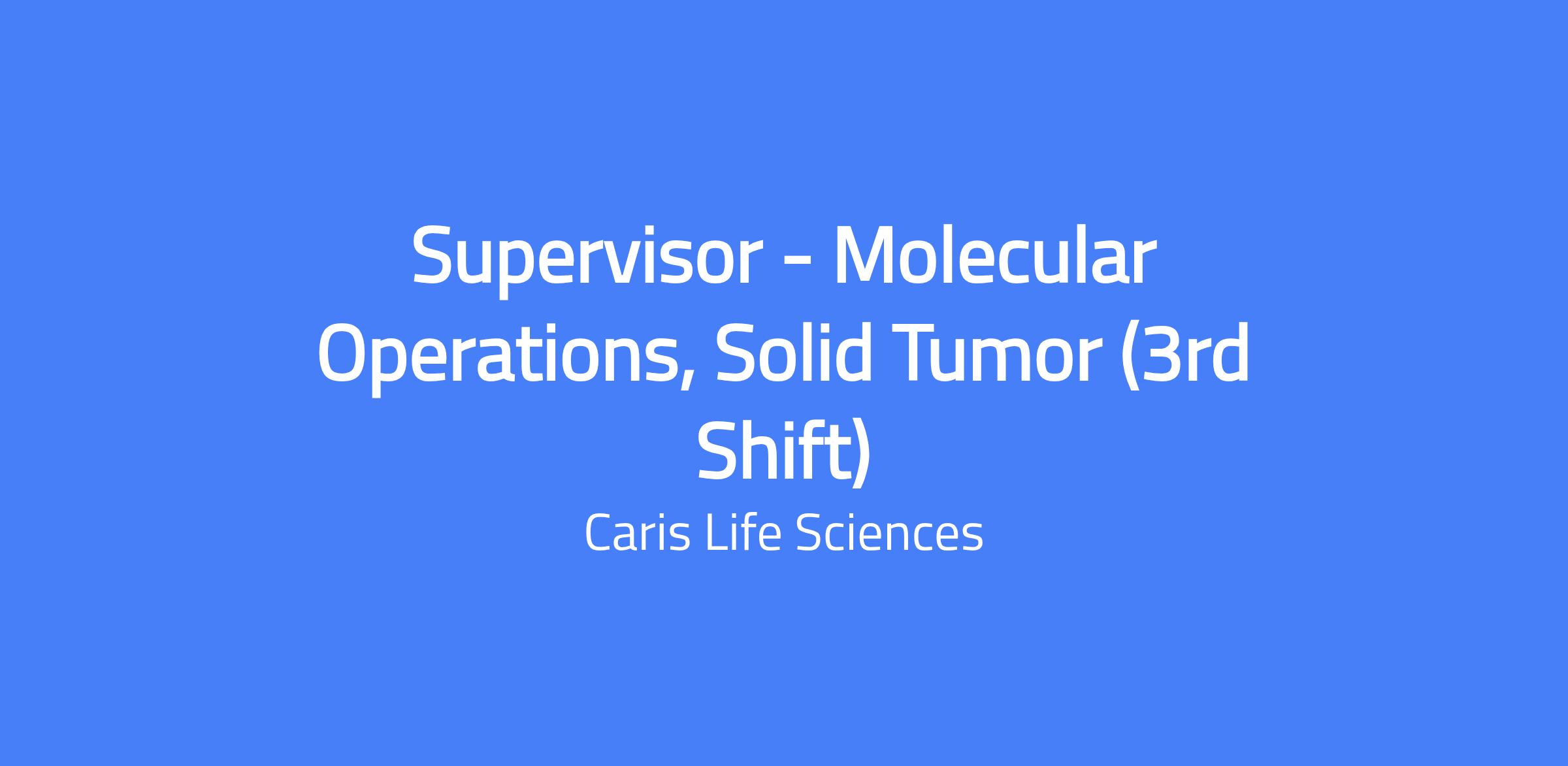 Supervisor of Molecular Operations oversees daily operations of the Molecular - Solid Tumor laboratory and ensures the molecular department meets quality guidelines for clinical testing.