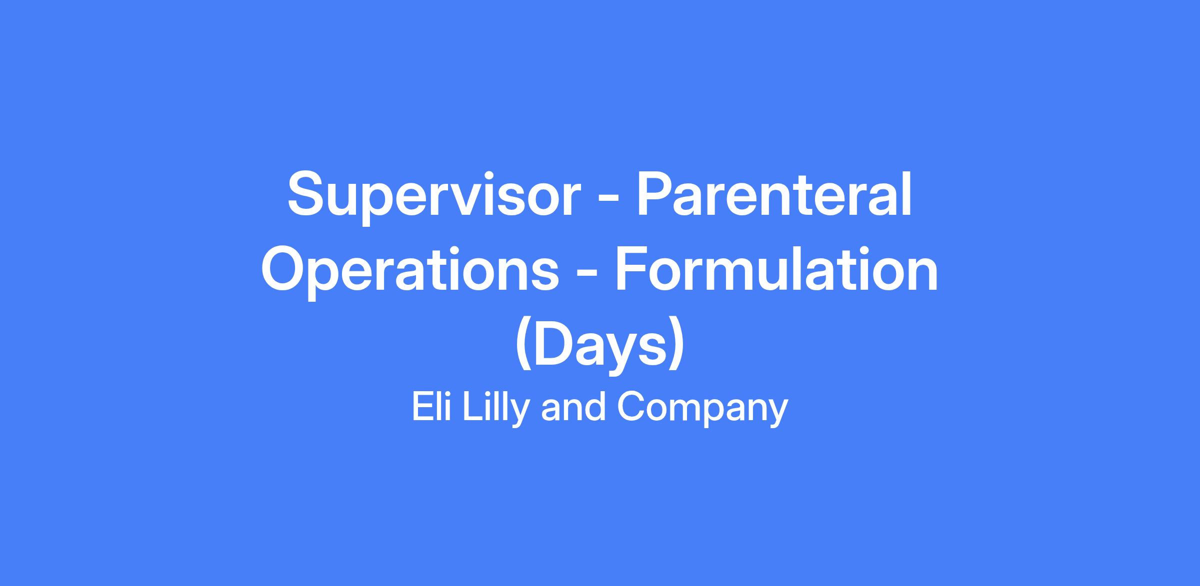 Supervisor - Parenteral Operations - Formulation (Days) leads the Parenteral (PAR) manufacturing team during startup and ongoing operations, focusing on product formulation, aseptic isolator barrier filling, and visual inspection. The role develops an inclusive culture, ensures staffing of trained personnel, enforces safety and quality standards, and drives operational readiness at a new Concord, North Carolina site with up to domestic and international travel as needed.