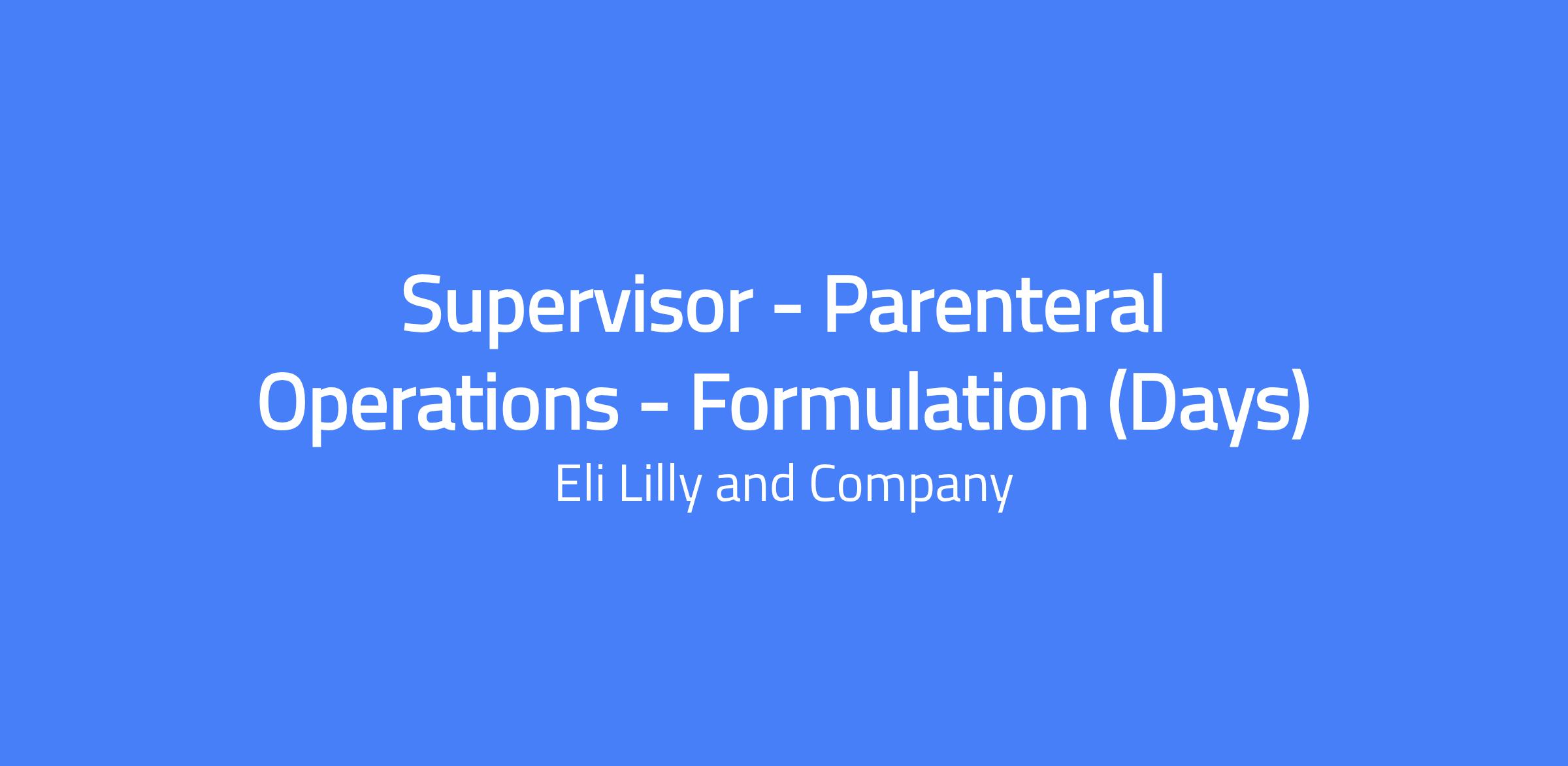 Supervisor - Parenteral Operations - Formulation (Days) leads the Parenteral (PAR) manufacturing team during startup and ongoing operations, focusing on product formulation, aseptic isolator barrier filling, and visual inspection. The role develops an inclusive culture, ensures staffing of trained personnel, enforces safety and quality standards, and drives operational readiness at a new Concord, North Carolina site with up to domestic and international travel as needed.