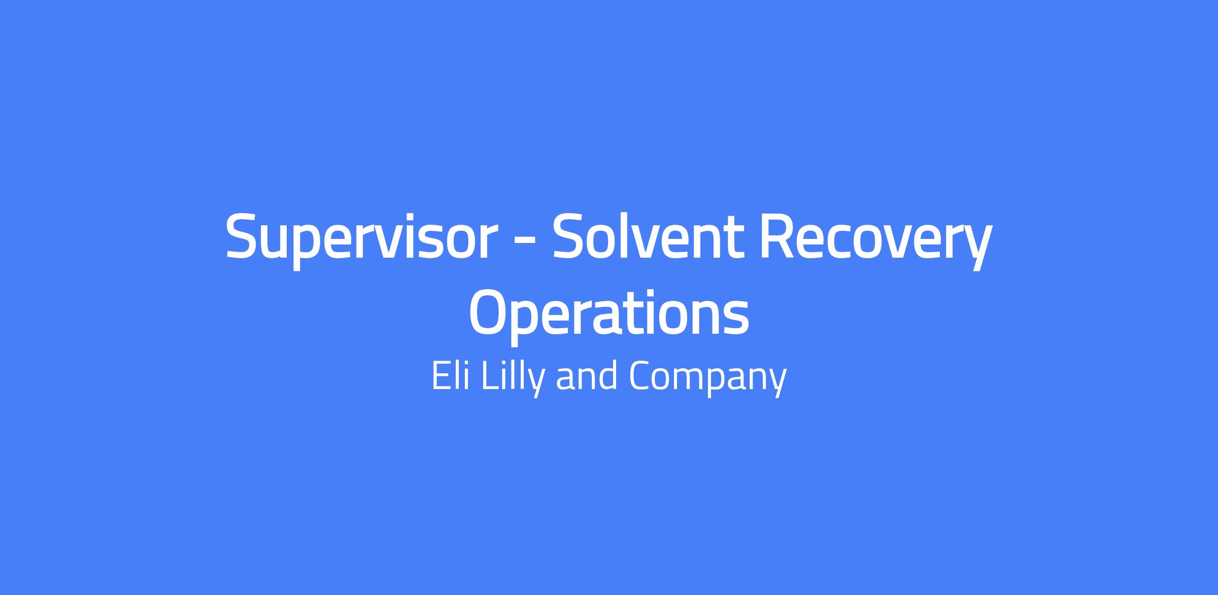 Supervisor - Solvent Recovery Operations