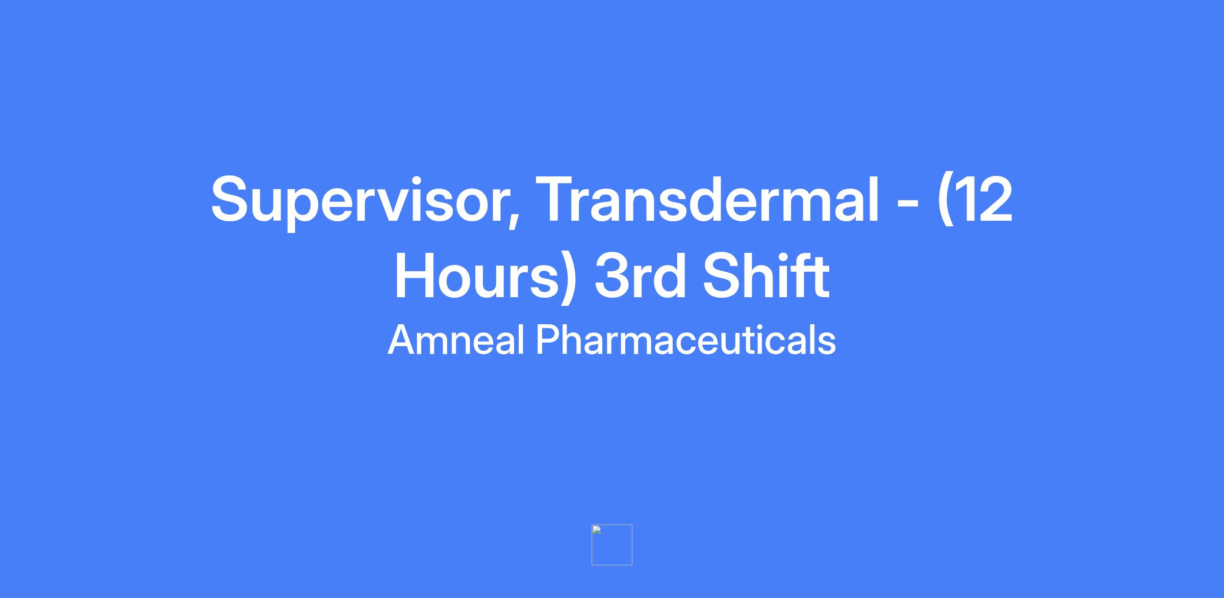 Supervisor, Transdermal - 12 Hours (3rd Shift) responsible for overseeing manufacturing floor operations, equipment start-up support, and participation in ANDA and commercial batch production. Role follows a 12-hour rotating schedule from 6:00 PM to 6:30 AM.