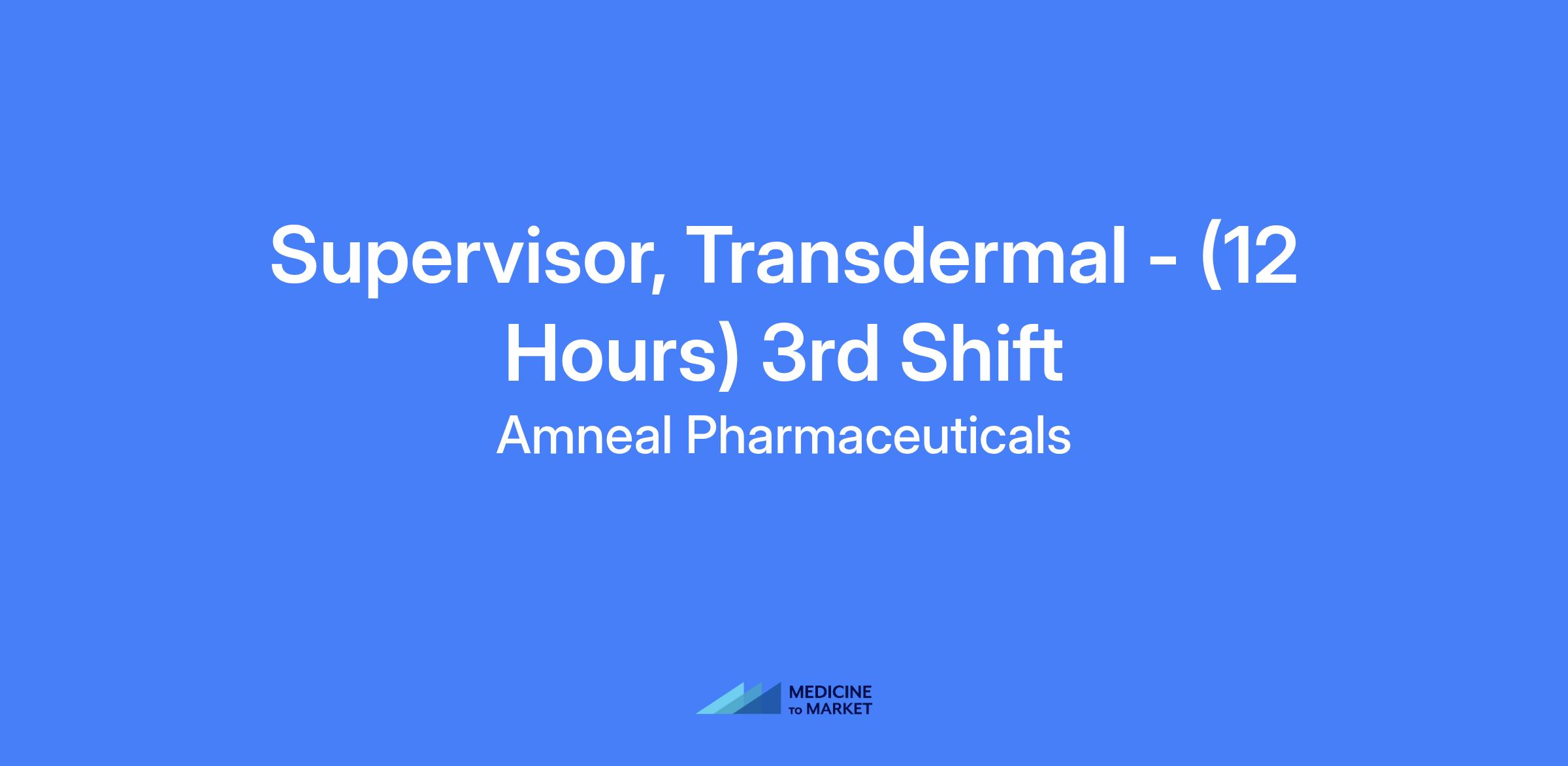 Supervisor, Transdermal - 12 Hours (3rd Shift) responsible for overseeing manufacturing floor operations, equipment start-up support, and participation in ANDA and commercial batch production. Role follows a 12-hour rotating schedule from 6:00 PM to 6:30 AM.