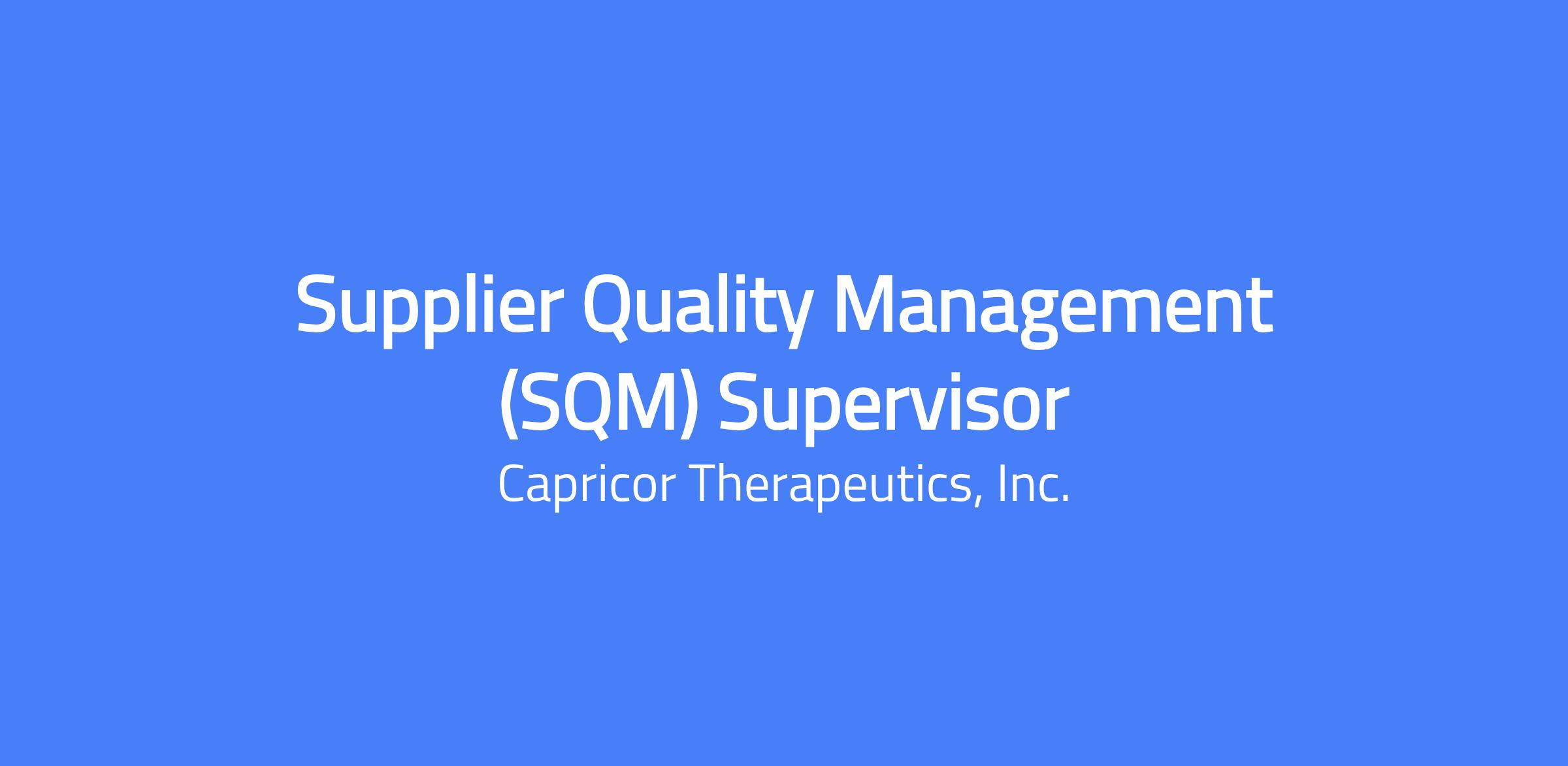 The Supplier Quality Management (SQM) Supervisor plays a critical role in building and maintaining Capricor’s world-class supplier quality program. This position oversees supplier qualifications, audit activities, supplier performance monitoring, and compliance with global GMP requirements across the supply chain. The role requires strong collaboration with Procurement, Manufacturing, QC, R&D, and other functional partners to ensure that externally supplied materials and services consistently meet Capricor’s quality standards. This position is ideal for detail-oriented quality professionals with deep experience in GMP/GLP environments and a passion for continuous improvement.