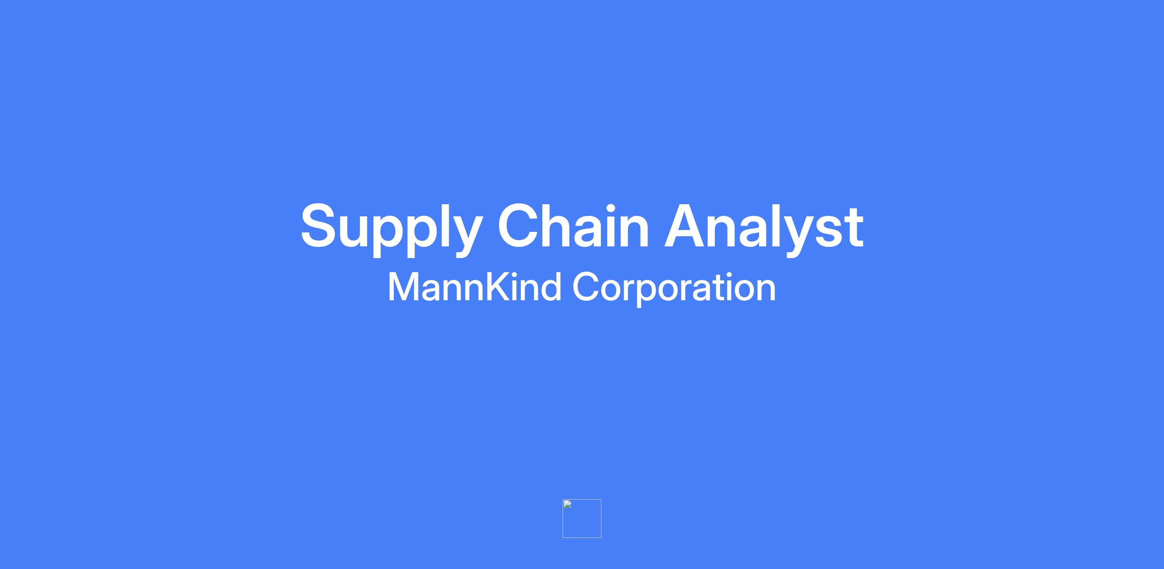 Supply Chain Analyst at MannKind Corporation. Detail-oriented role supporting manufacturing operations with responsibilities spanning planning, production flow, and cross-functional collaboration to ensure product availability and minimize operational risk.