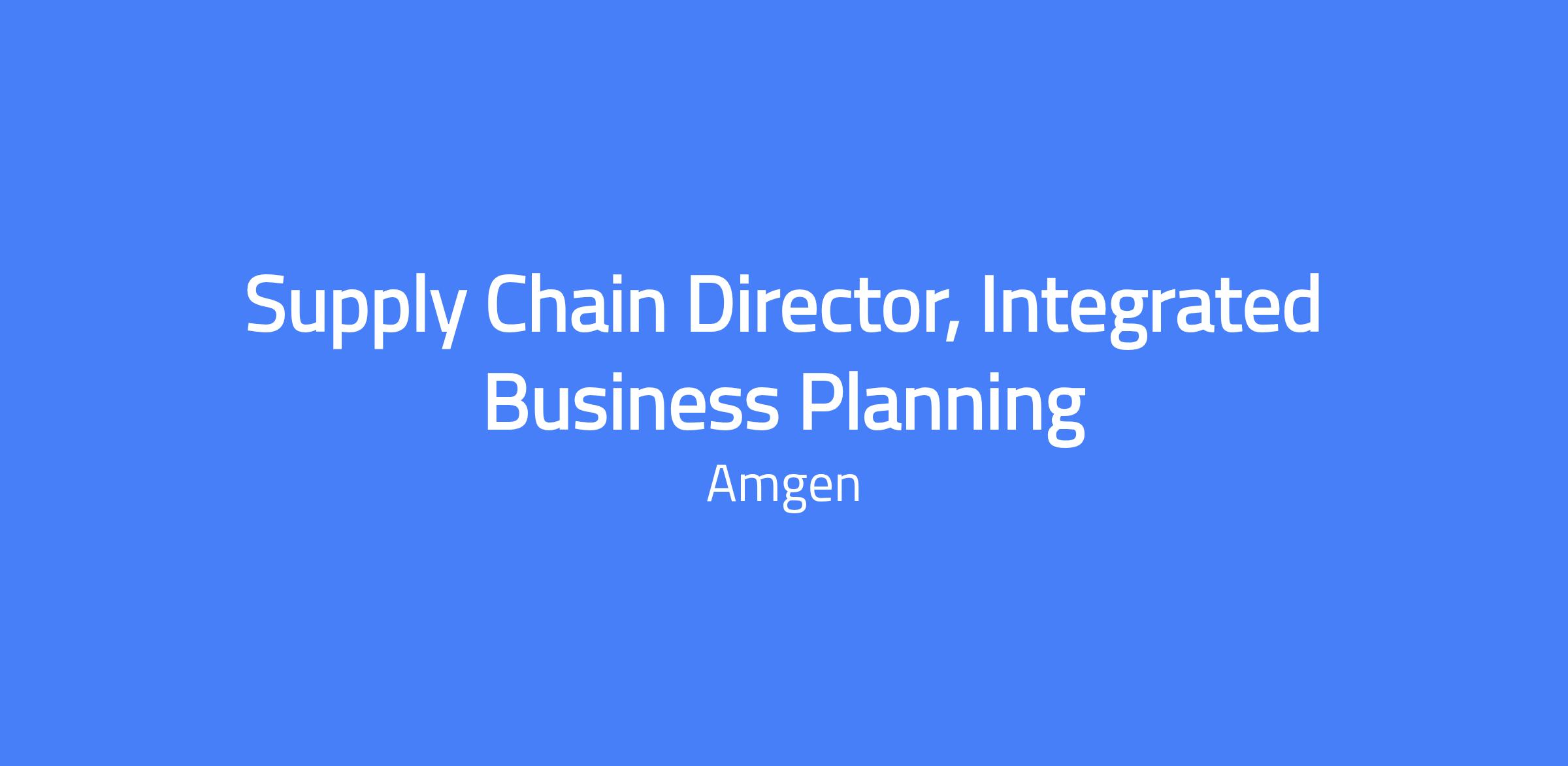 Supply Chain Director, Integrated Business Planning (IBP) leads the enterprise IBP process at Amgen, aligning demand, supply, finance, and strategy to enable informed decision-making, optimize performance, and support the company’s growth and strategic objectives. The role advances IBP maturity across the enterprise and provides executives with clear insights, scenarios, and recommendations in a regulated, portfolio-driven environment.