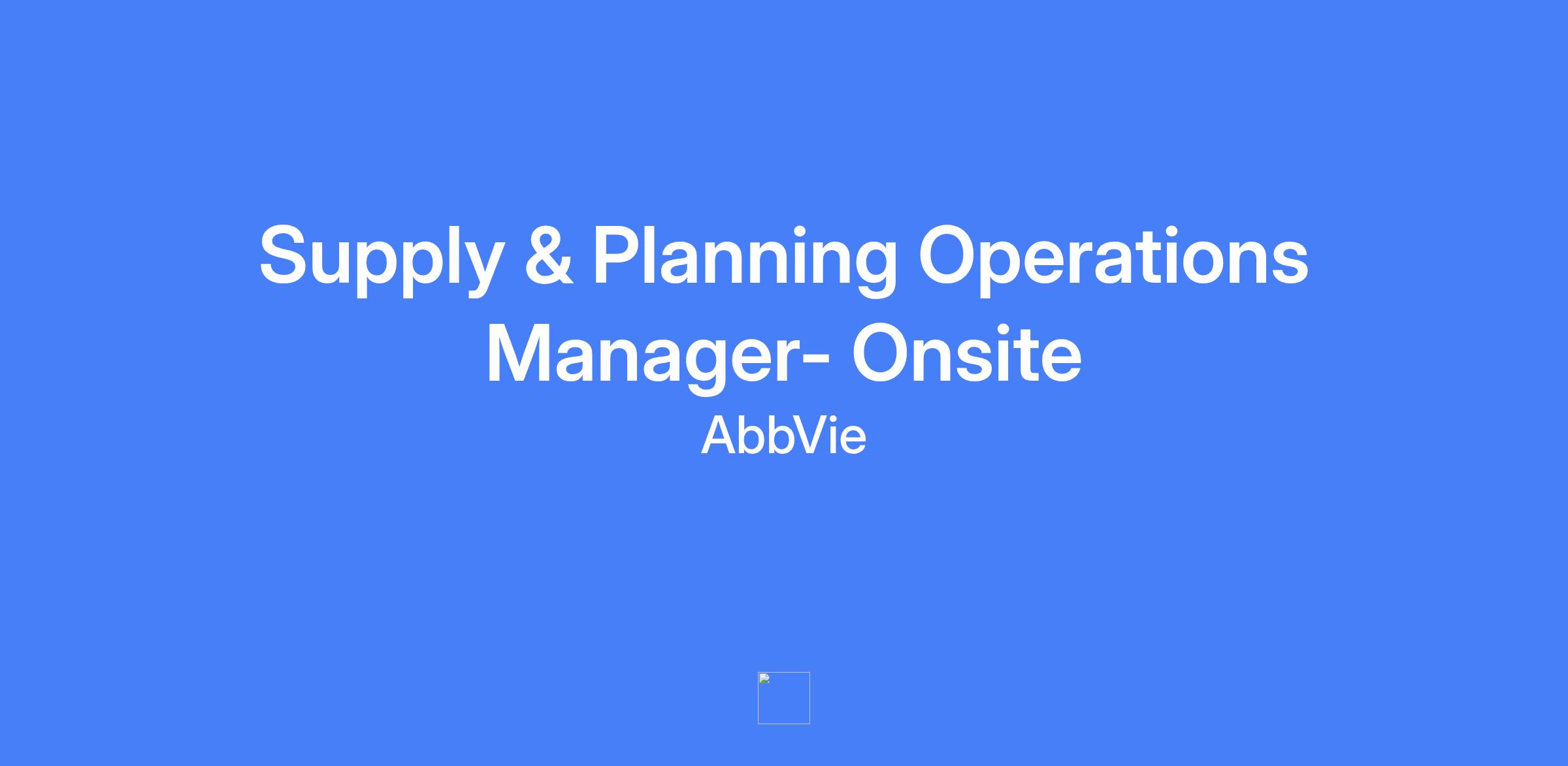 Supply & Planning Operations Manager- Onsite at AbbVie. Oversees production planning, purchasing, warehousing, shipping, and coordination of incoming sampling operations. Develops long and short-range planning of production materials, forecasts product volumes and demands, costs, manufacturing capacity, and inventory investment goals. Ensures inventory plans and supplier management for supply assurance and on-time receipt and shipment. Oversees Quality, Regulatory, and Financial expectations and ensures compliance with applicable regulatory agencies.