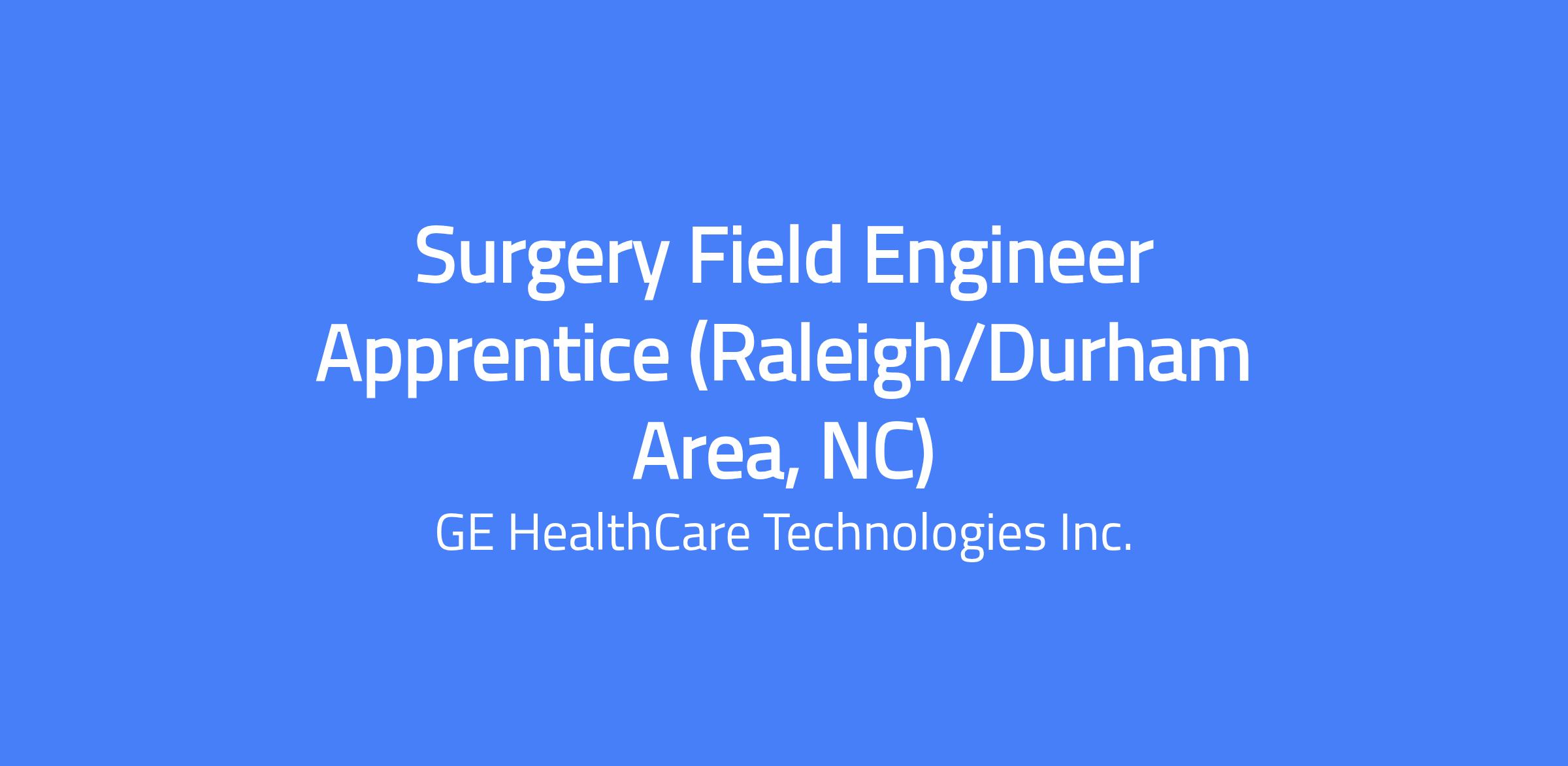 Job Description Summary GE HealthCare is a leading global medical technology and digital solutions innovator. Our mission is to create a world where healthcare has no limits. Unlock your ambition, turn ideas into world-changing realities, and join an organization where every voice makes a difference, and every difference builds a healthier world. In this role, the Field Engineer Apprentice will observe and perform various equipment service processes and procedures to drive customer satisfaction and ensure proper functionality of less complex customer diagnostic imaging equipment. This is an onsite customer‑facing service position focused on maintaining and repairing medical equipment in healthcare environments. Time is spent supporting customers in hospitals and clinical settings, serving as the face of GE HealthCare at customer sites. This one-year apprenticeship is designed to prepare candidates for a long‑term career in field service. The apprenticeship will be scheduled to align with the anticipated availability of an internal position to support continuity of employment following program completion. Job Description Role Responsibilities Work within hospital radiology environment to evaluate and troubleshoot imaging equipment issues and implement appropriate repairs. Complete Preventative Maintenance on designated equipment. Perform safety and environmental inspections ensuring compliance to Health and Human Services and Environmental Health and Safety guidelines. Complete necessary service and repair documentation following hospital protocol and GEHC policies & procedures. Maintain daily communications with customers to ensure resolution and proper follow-up, leading to customer satisfaction. Learn and ensure proper care of tools and test equipment and ensure calibration. Enhance and maintain technical knowledge of current standards, codes and procedures regarding safe and effective use of medical equipment. Mentor with and assist more experienced technicians on progressive repairs and resolution, and will work as a member of the local team to provide efficient service delivery to all accounts within his/her assigned area Complete all planned Quality and Compliance training within the defined deadlines. Identify and report all customer quality or compliance concerns immediately to the Quality Organization. Aware of and comply with the GEHC Quality Manual, Quality Management System, Quality Management Policy, Quality Goals, and applicable laws and regulations as they apply to this job type/position. Required Qualifications AS, BS, MS degree, military education, certificate program, current student with less than 12 months from completion OR High School Diploma/GED with 6 months experience servicing electronic, IT or mechanical equipment. Previous experience and/or course work in which you have successfully interpreted schematic diagrams and performed troubleshooting and planned maintenance on basic diagnostic imaging or electronic equipment following current standards, code, and procedures to ensure safe and effective operation of those devices. Must have reliable transportation and a valid driver's license. Legal authorization to work in the U.S. is required. We will not sponsor individuals for employment visas, now or in the future, for this job. Desired Qualifications Previous experience interpreting schematic diagrams and perform effective repair and planned maintenance on basic biomedical or electronic equipment. Analytical and communication skills with the ability to communicate technical issues to the customer in an easy-to-understand manner. Ability to develop and maintain good customer relations. Experience interfacing with both internal team members and external customers as part of a solution-based service process. Experience diagnosing and repairing mechanical, electromechanical, and/or electronic equipment in the electronic field - resulting in knowledge of electronic digital circuitry and understanding of electronic and electro-mechanical devices. Change agent and process oriented. Location & Mobility Local candidates strongly preferred. You may not relocate more than 30 miles from your current location without approval from your manager. Looking for our next apprentice to be within the Raleigh/Durham area of North Carolina. Program Considerations Successful completion of the apprenticeship and conversion to a full‑time internal position are based on performance, business need, and role availability. Candidates who are open to relocation may increase their chances of placement into a full‑time internal role. In 2025, 84% of apprentices completing the program moved into full time internal positions. Physical & Compliance Requirements Ability to lift and carry equipment up to 35 pounds unassisted and perform frequent bending, stooping, twisting, climbing, crouching, kneeling, sitting, and standing for extended periods. Ability to reach at, above, and below shoulder level; flex and extend neck; and demonstrate good hand and finger dexterity. Specific vision abilities may include color vision, close vision, distance vision, peripheral vision, and depth perception. Must successfully complete GE HealthCare background checks, post‑offer drug testing, and ongoing customer access requirements, including required immunizations (obtaining and/or providing proof), additional drug tests/background checks (including a federal government background check if assigned to support a contract with the federal government), and site‑specific compliance protocols. #LI‑Onsite For U.S. based positions only, the pay range for this position is $48,000 - $72,000. It is not typical for an individual to be hired at or near the top of the pay range and compensation decisions are dependent on the facts and circumstances of each case. The specific compensation offered to a candidate may be influenced by a variety of factors including skills, qualifications, experience and location. In add