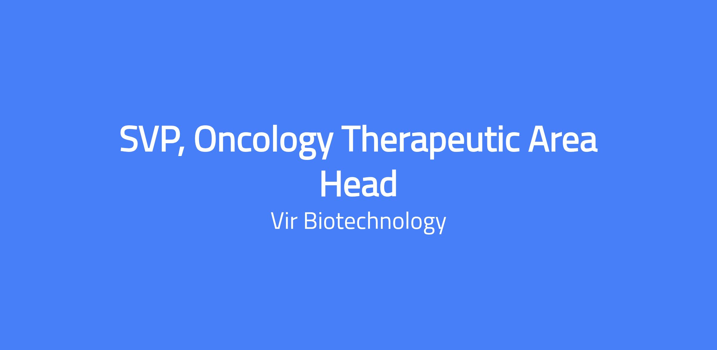 Reporting to the Chief Medical Officer, or CMO, the SVP Oncology Therapeutic Area Head, or TA Head, will be responsible for overseeing the successful development of multiple molecules for the treatment of cancer in Vir Biotechnology's oncology portfolio. The Oncology TA Head will lead the oncology strategy and lead a cross-functional clinical team to develop novel therapeutics from IND through marketing application and registration.  This will include guidance and oversight of clinical development strategies for multiple programs and provision of expert input to clinical developability of pre-clinical assets in the oncology pipeline.  The TA head will be a key partner for the Research Organization and will provide clinical and strategic leadership for programs in Discovery through IND filing.  The TA Head will also be a key partner for business development in oncology.