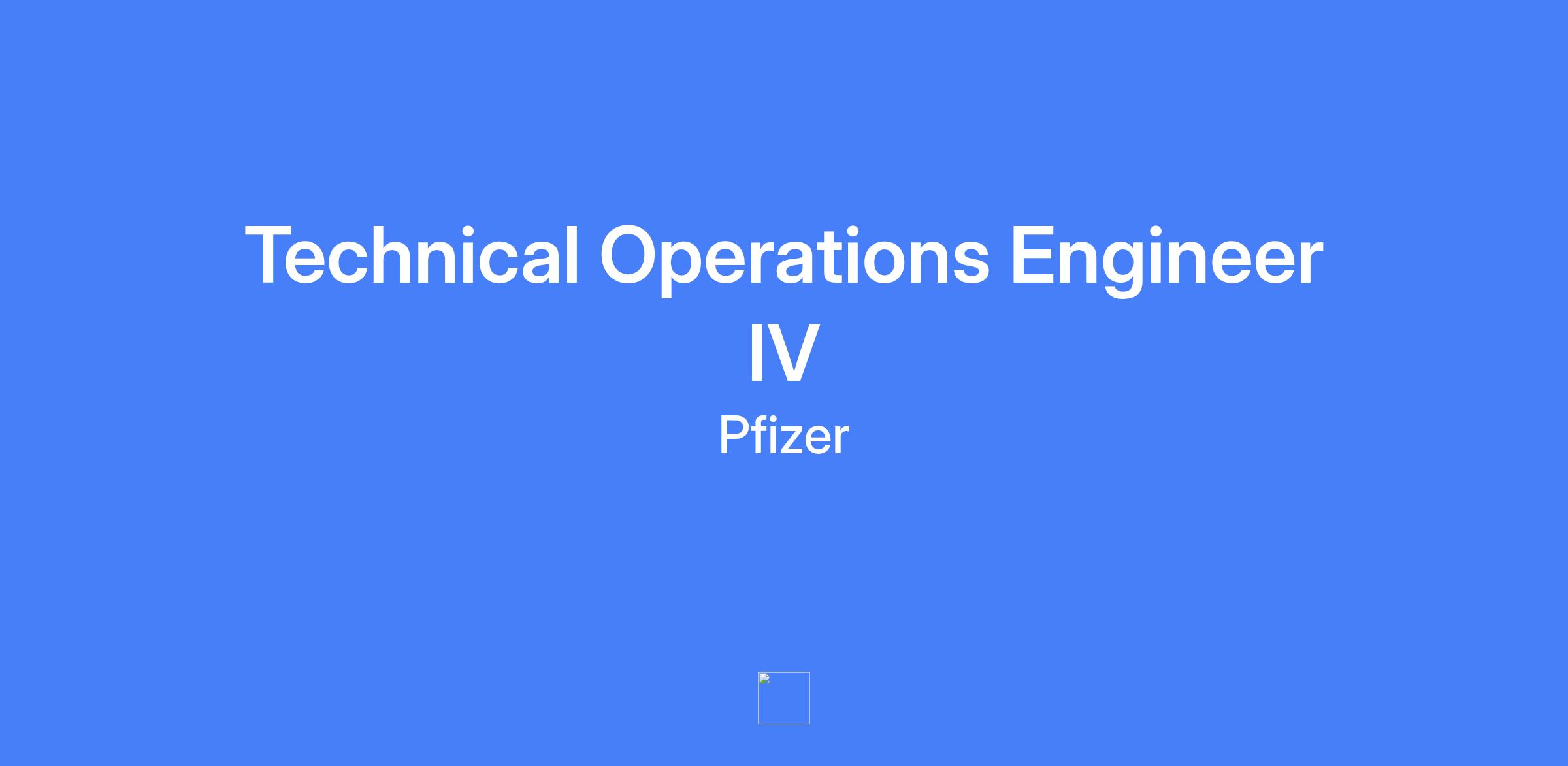 Technical Operations Engineer IV at Pfizer. Lead Engineer and SME for site Computer System Validation (CSV) supporting a 24/7 manufacturing operation. Provides guidance to site technical teams on CSV projects to ensure compliance, reliability, and functionality; contributes to resource forecasting and may lead a team of junior members or contractors. Works as a technical SME to advance CSV concepts and facilitates cross-functional agreement. Supports data integrity initiatives and maintains DI compliance in manufacturing processes and controls.