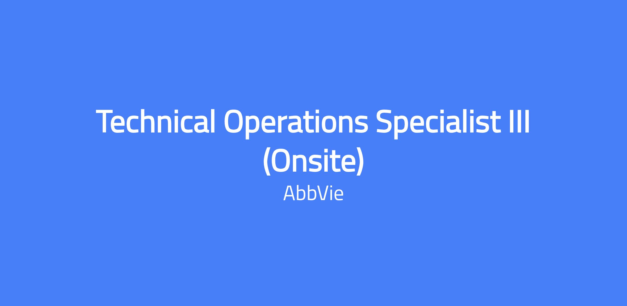 Technical Operations Specialist III (Onsite) supports the Technical Operations department by evaluating, selecting, applying, and adapting engineering techniques and criteria in manufacturing processes. The role optimizes manufacturing processes for new and existing products, including ingredient addition, blending, sterilization, and transfer methods, and resolves process and equipment issues. It involves preparing drawings, specifications, calculations, charts, and graphs, and ensuring compliance with codes, cGMP, and safety standards to support production operations.