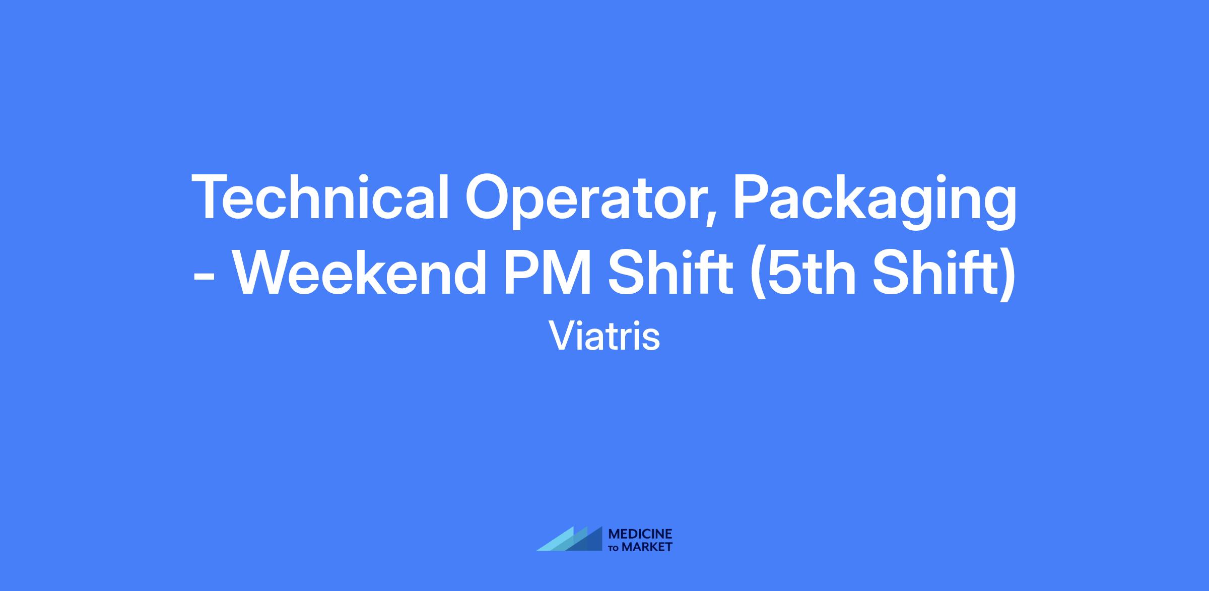 Technical Operator, Packaging - Weekend PM Shift (5th Shift)