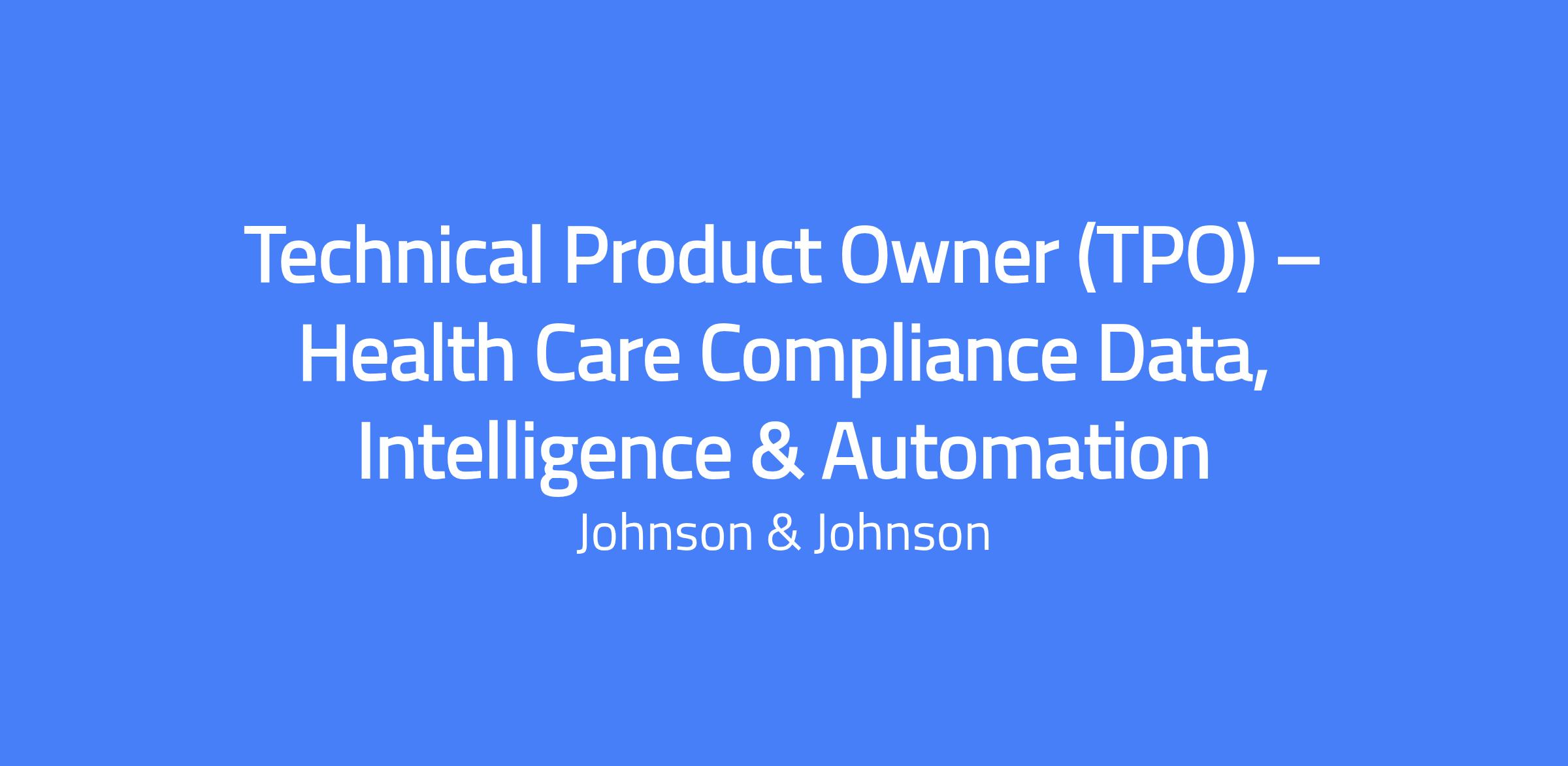 We are looking for a proactive and results-oriented Technical Product Owner (TPO) according to the High-Performance Team (HPT) model to spearhead the end-to-end execution of Health Care Compliance (HCC) Data, Intelligent Automation, and Artificial Intelligence products and platforms as part of the Data, Intelligence & Automation (DI&A) team. As Lead for HCC Data, Intelligence & Automation, you will be accountable for building and sustaining a High-Performance Team (HPT) culture. You will drive strategic vision, execution, and transformation for Risk Function’s Data, Intelligent Automation, and AI initiatives, ensuring that HPT principles—such as trust, collaboration, accountability, continuous improvement, and business value results are embedded in every aspect of team and product delivery. Location: New Brunswick, New Jersey, United States of America.