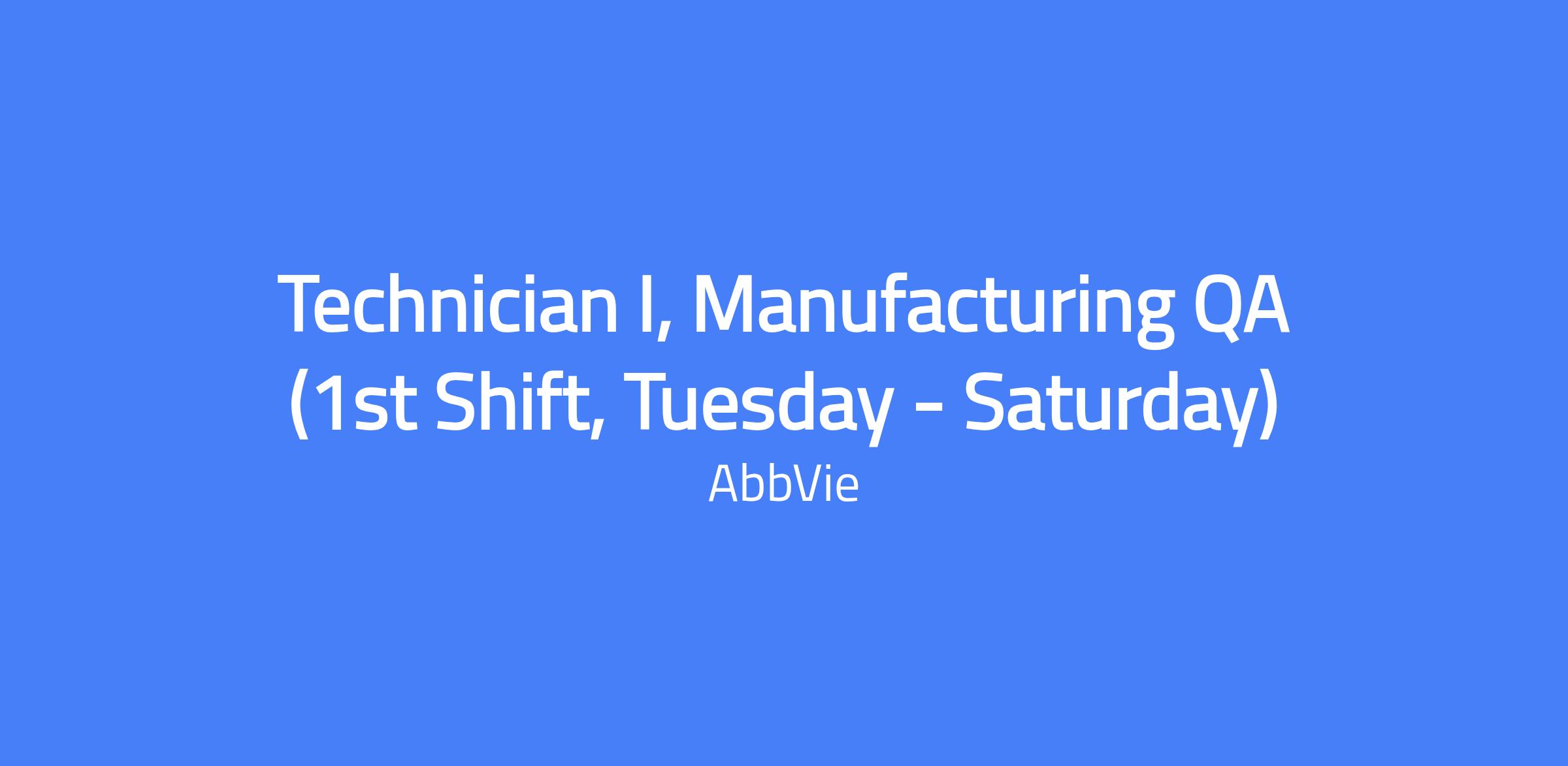 Technician I, Manufacturing QA performing visual inspection of finished and in-process materials, classifying defects, and determining test disposition to ensure products meet quality limits per FDA regulations. Responsible for documenting inspection results in manufacturing systems, managing quality sampling across production lines, and supporting continuous improvement in documentation, procedures, processes, and equipment. Reports to maintain safety, quality, and positive collaboration within cross-functional teams. This is a 1st shift position (TuesdayโSaturday, 7:00 AMโ3:00 PM).