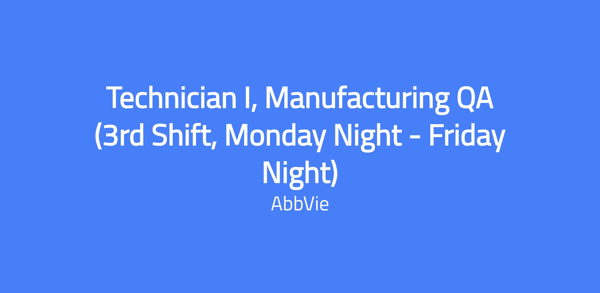 Technician I, Manufacturing QA (3rd Shift, Monday Night - Friday Night)