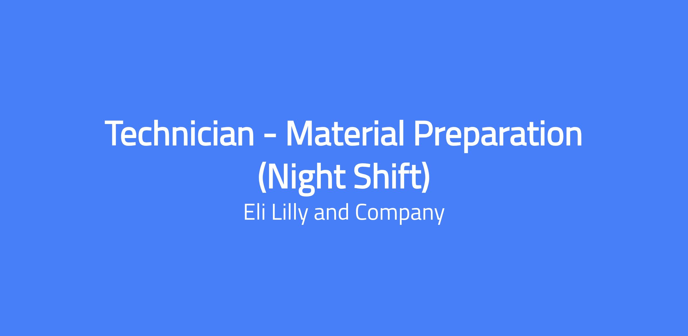 Technician - Material Preparation (Night Shift) at Lilly. This role involves executing daily operational tasks with a focus on material preparation to support filling, dispensing, and formulation processes on the night shift.