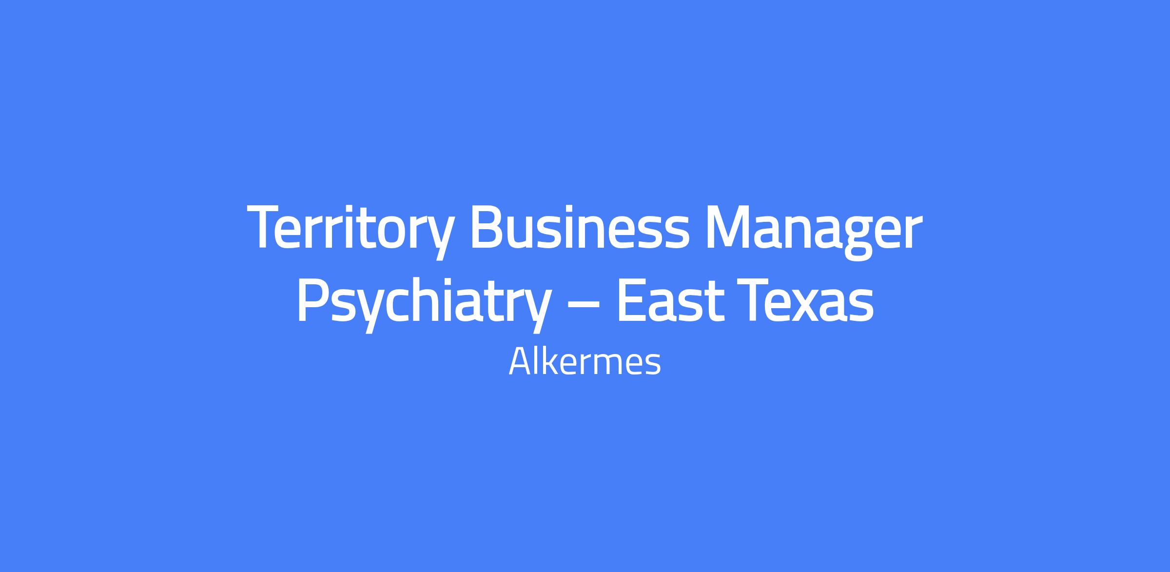 Territory Business Manager (TBM) is responsible for selling Alkermes products in the East Texas territory and supporting promotional efforts. Ideal candidates should be proven sales achievers and live in the territory. This will be done by having thorough product, disease state and market knowledge and sound selling skills. He/she will utilize available resources to help educate healthcare providers. Finally, he/she will use their analytical ability to determine appropriate targets and will use approved resources accordingly.