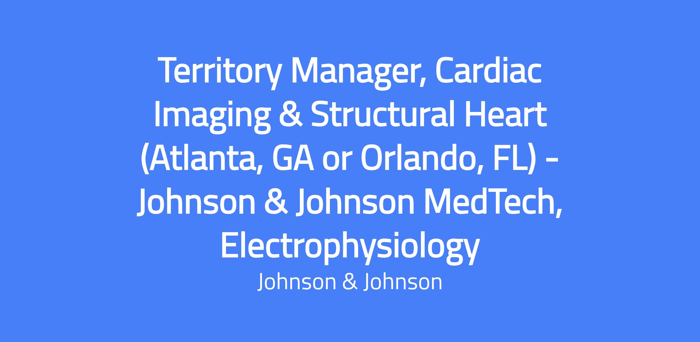 Territory Manager, Cardiac Imaging & Structural Heart (Atlanta, GA or Orlando, FL) - Johnson & Johnson MedTech, Electrophysiology