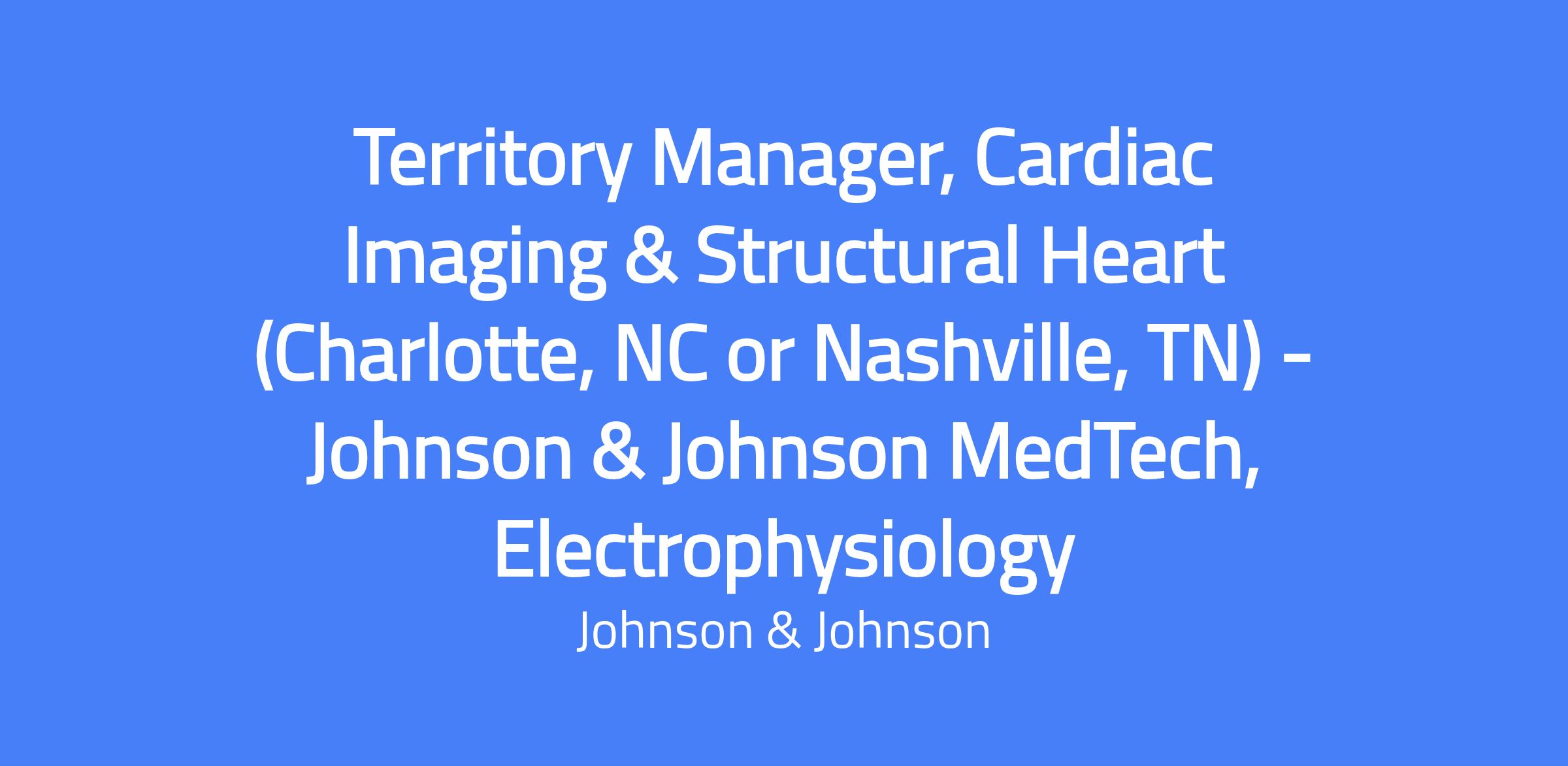 Territory Manager, Cardiac Imaging & Structural Heart (Charlotte, NC or Nashville, TN) - Johnson & Johnson MedTech, Electrophysiology