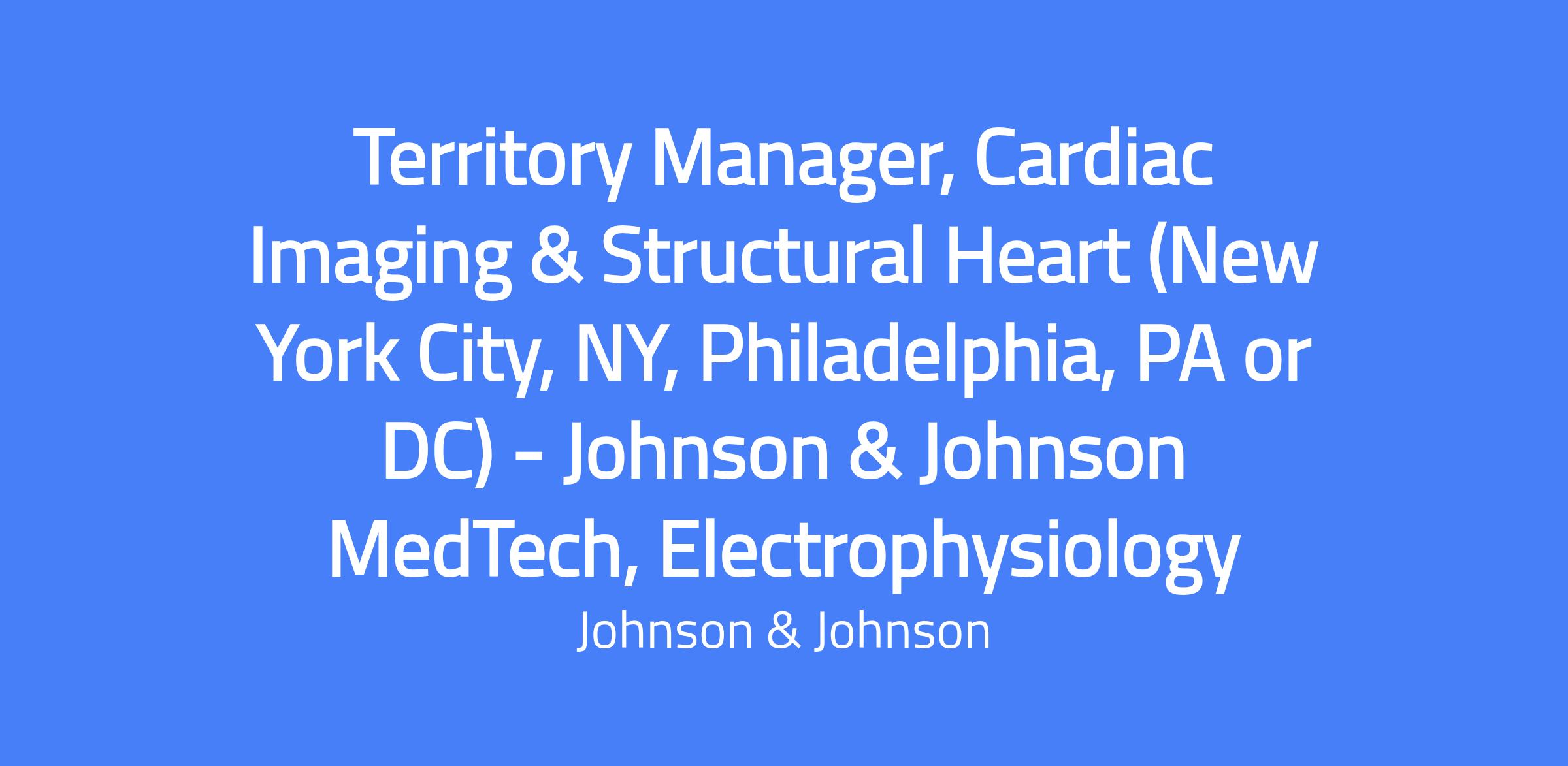 Territory Manager, Cardiac Imaging & Structural Heart (New York City, NY, Philadelphia, PA or DC) - Johnson & Johnson MedTech, Electrophysiology