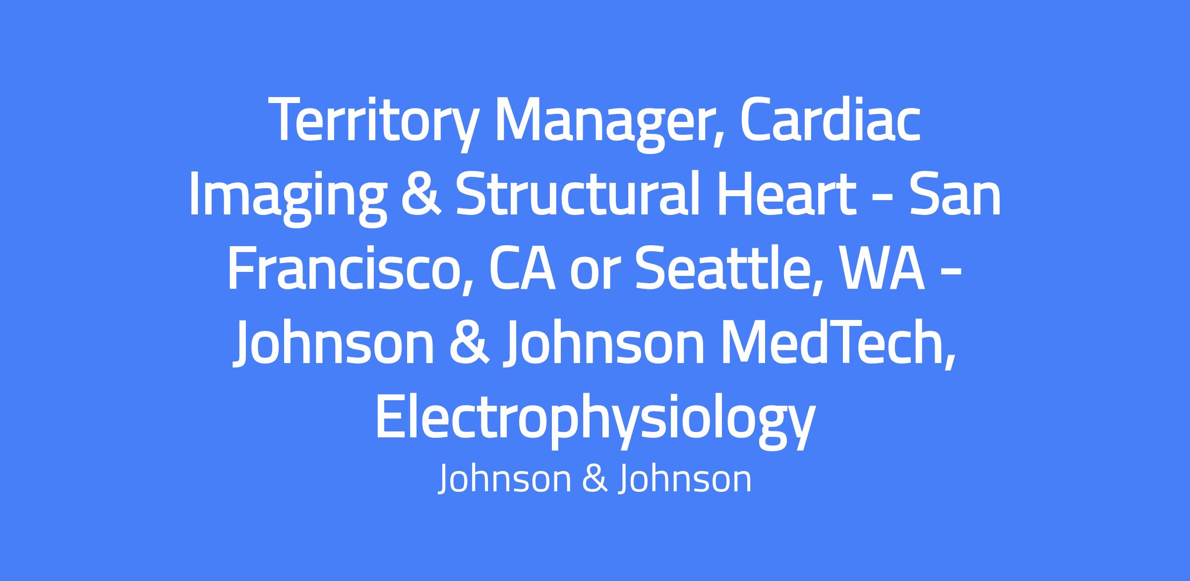 Territory Manager, Cardiac Imaging & Structural Heart - San Francisco, CA or Seattle, WA - Johnson & Johnson MedTech, Electrophysiology