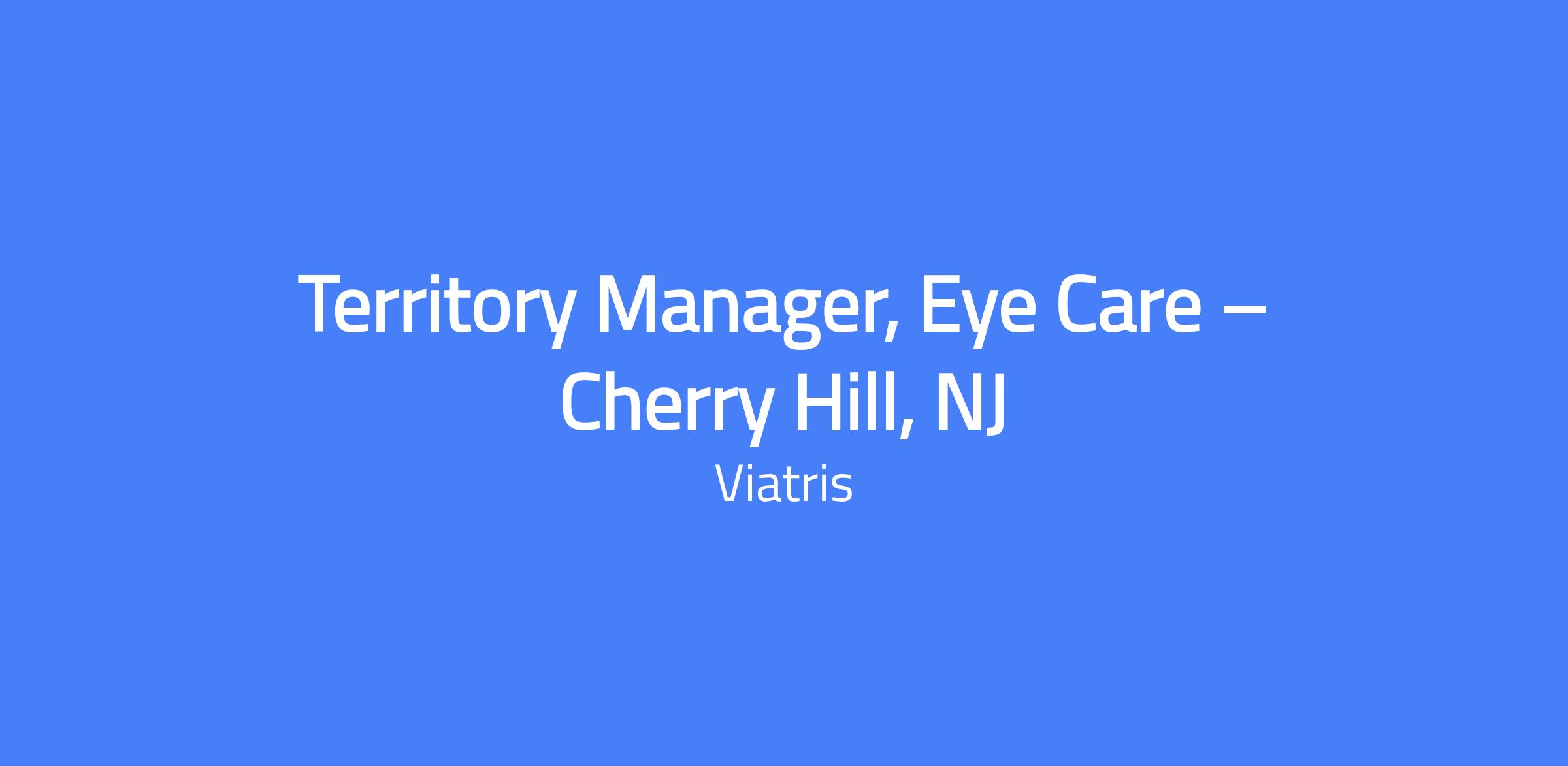 Territory Manager, Eye Care β Cherry Hill, NJ