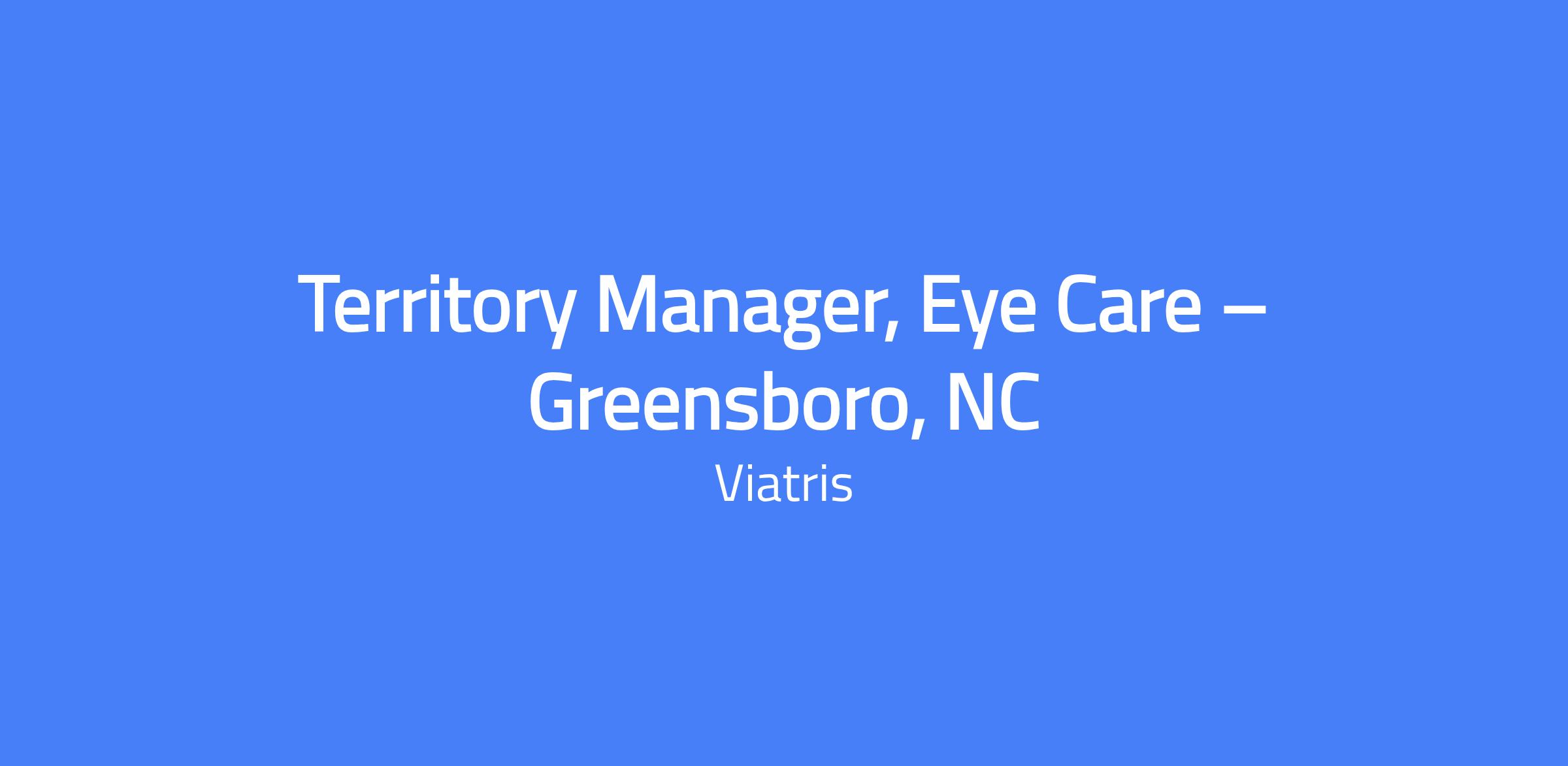 Territory Manager, Eye Care β Greensboro, NC. Responsible for meeting and exceeding territory sales objectives, developing and maintaining partnerships with targeted eye care accounts, and delivering disease-state education-focused messages to the Eye Care community while adhering to regulatory standards.