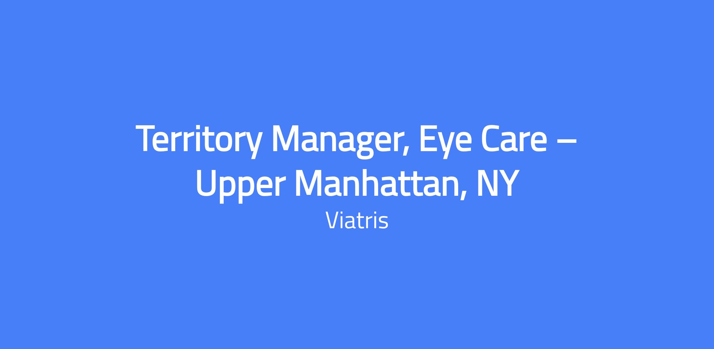Territory Manager, Eye Care β Upper Manhattan, NY is responsible for leading sales in the Upper Manhattan region (Harlem, South Bronx, Washington Heights). You will meet or exceed territory sales objectives, develop partnerships with targeted eye care professionals, and represent Viatris' Eye Care vision and culture to the community. You will leverage disease-state knowledge and market trends to drive pull-through and deliver patient-centric education, while collaborating with internal partners to optimize territory performance. Travel within the territory may be required.