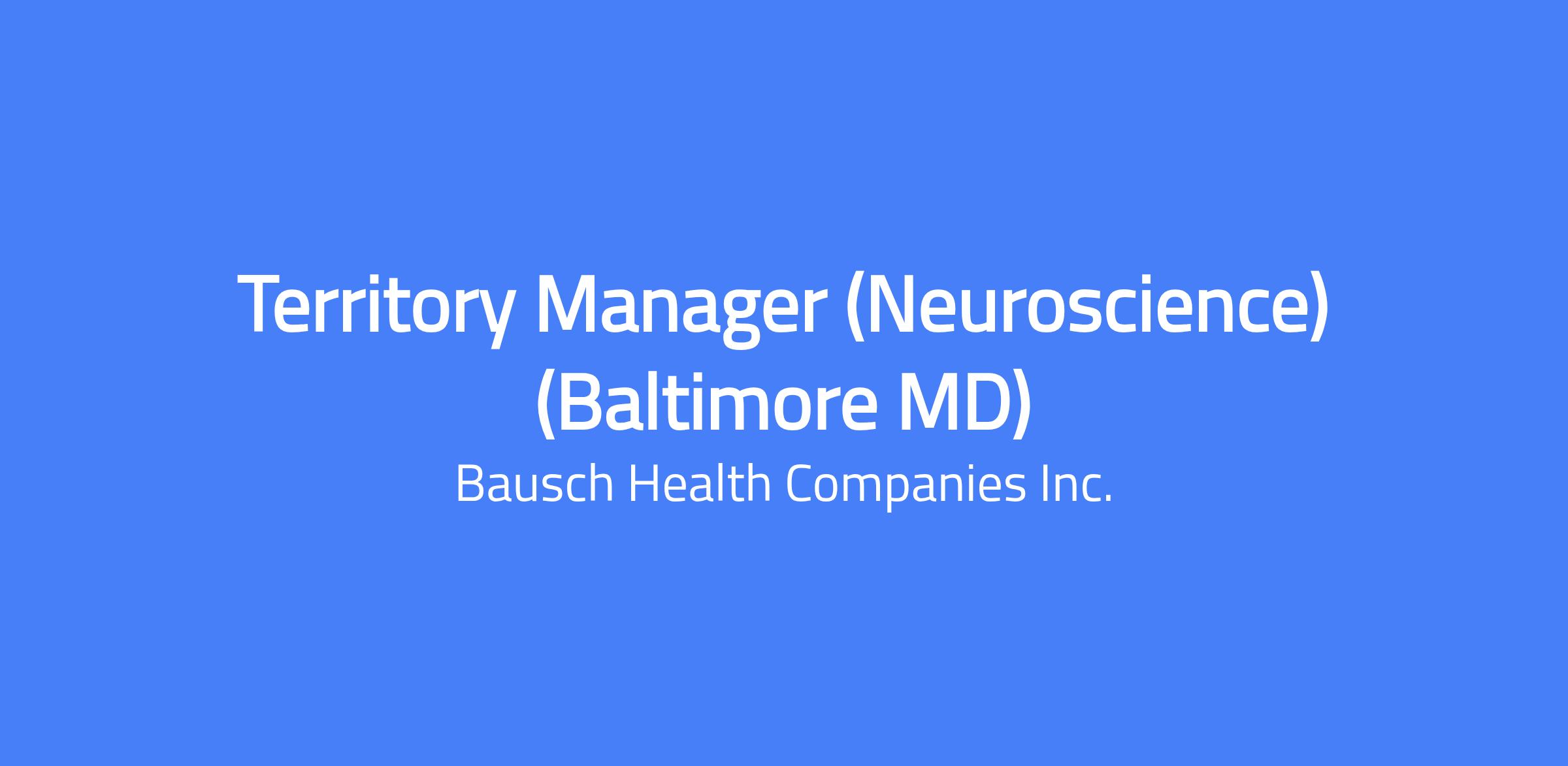 Territory Manager (Neuroscience) based in Baltimore, MD, with coverage including surrounding areas (Baltimore, Gaithersburg, and Silver Spring) to develop and implement a business/sales plan and conduct sales with key targeted healthcare providers.