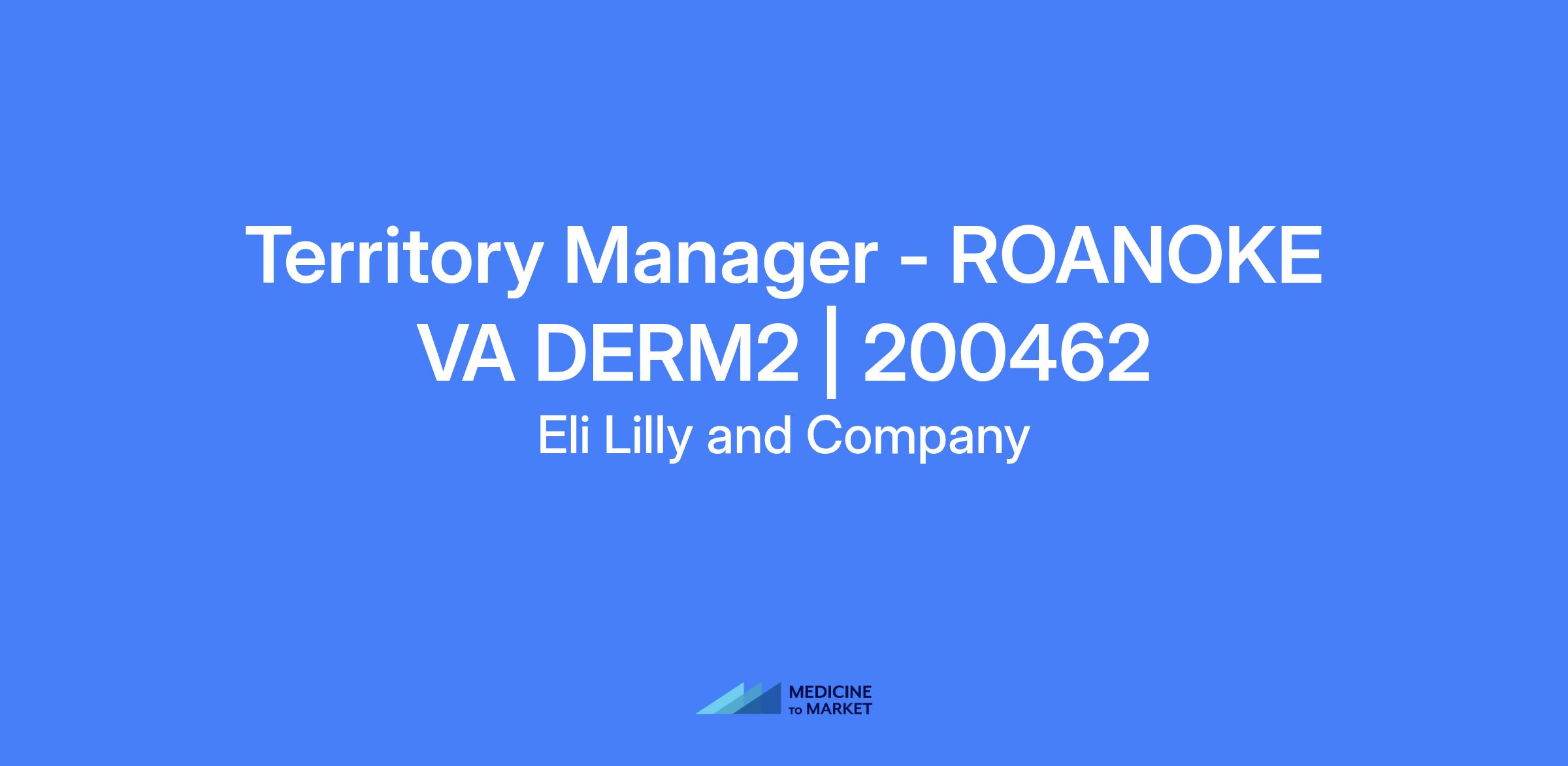 Territory Manager - ROANOKE VA DERM2_200462. Responsible for account-based selling to health care providers in dermatology, building relationships to drive adoption of Lilly's dermatology portfolio, and developing business relationships with advocacy groups and other stakeholders.