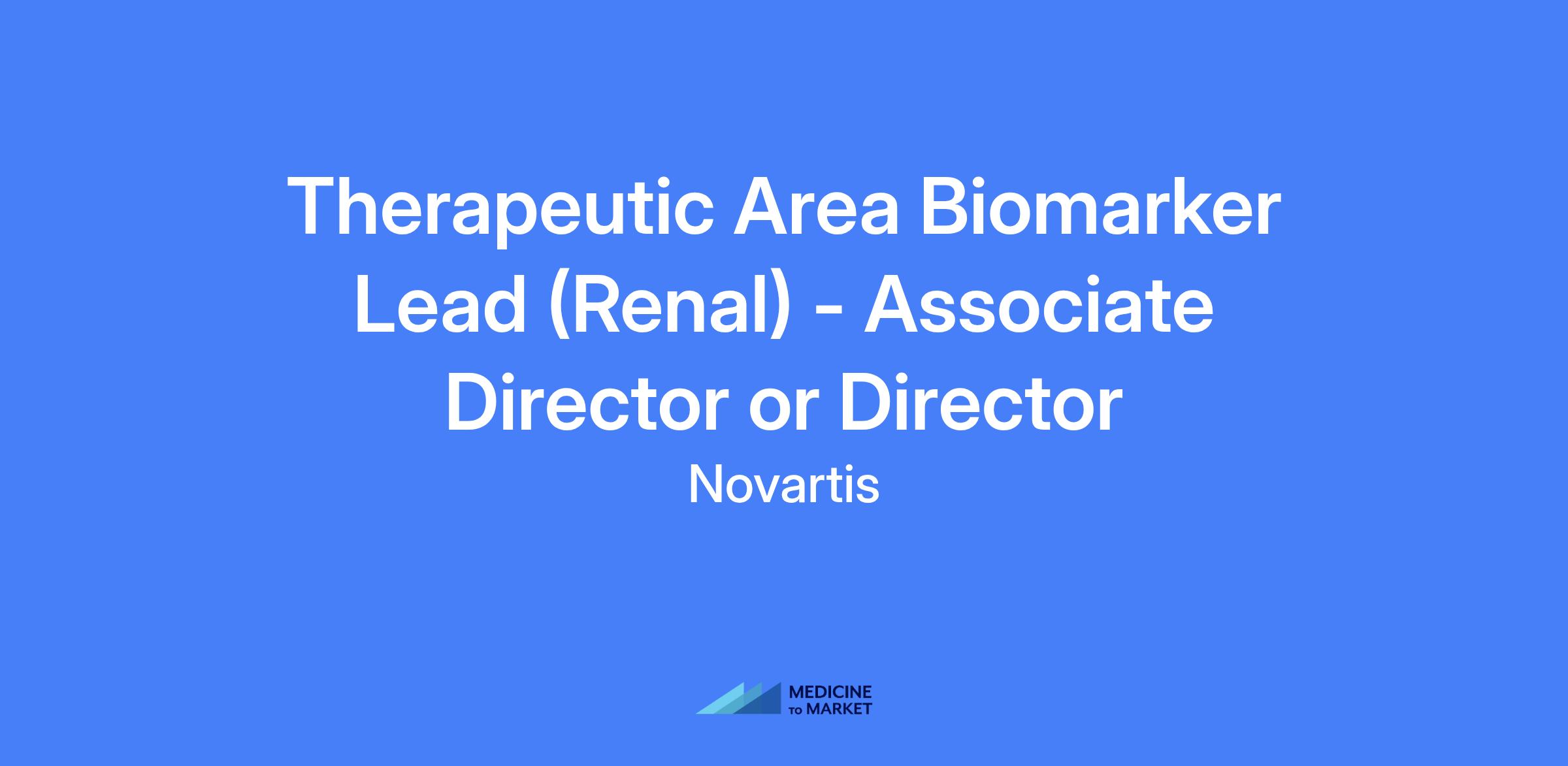 Therapeutic Area Biomarker Lead (Renal) - Associate Director or Director. Lead areas related to renal diseases, overseeing project matrix teams of Biomarker Leads and subject matter experts to support clinical projects as the Biomarker Lead. Biomarkers enable translational research and precision medicine approaches across early and late clinical development, covering target engagement, pathway modulation, efficacy, PD/PK, safety, disease modification, patient selection, and other contexts of use to support program decisions.