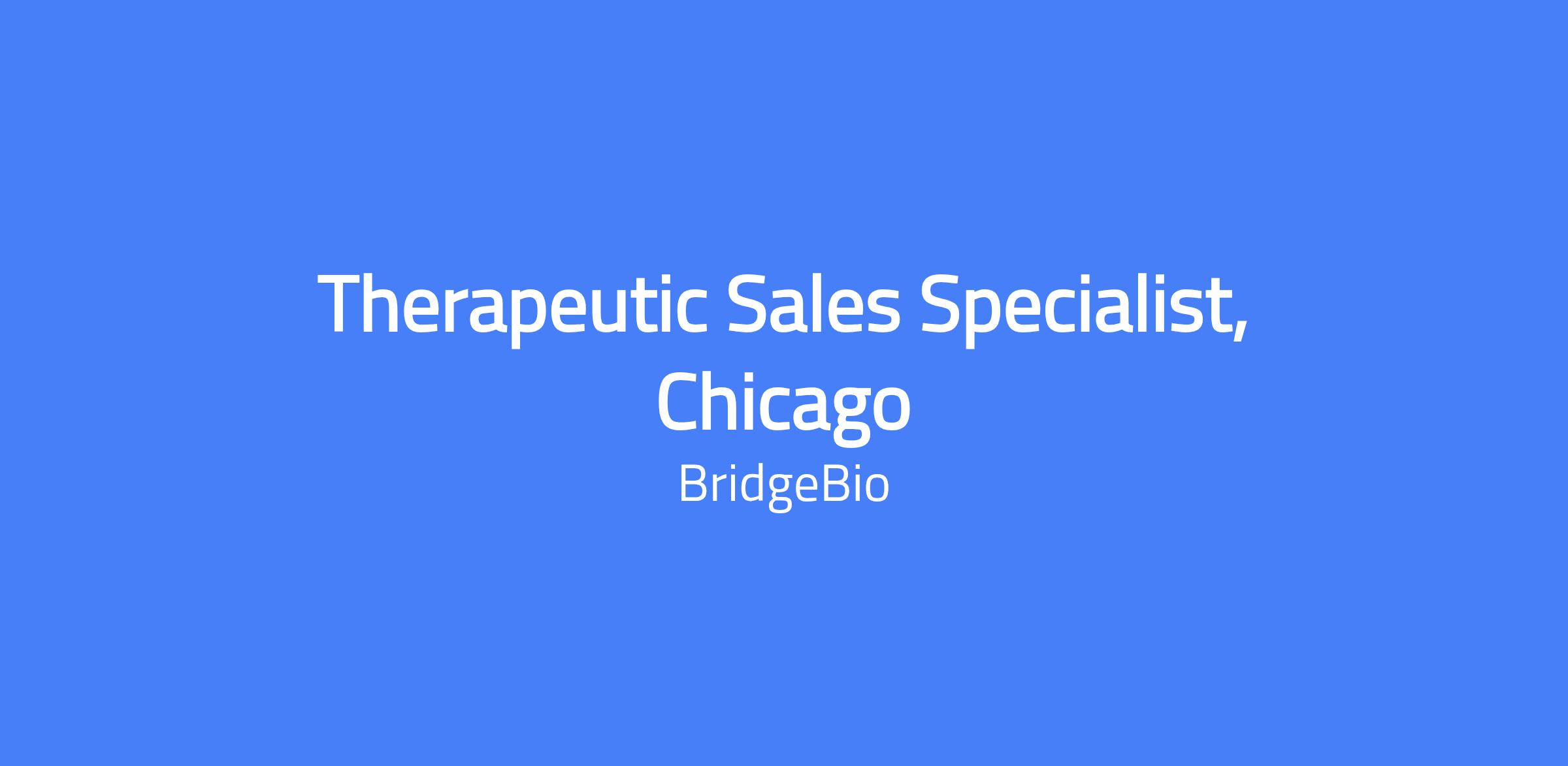 Therapeutic Sales Specialist in Chicago (field-based) focused on launching and promoting products within an assigned territory. Acts as a patient champion with strong business and clinical acumen to drive product launches and address unmet patient needs. Represents the company with integrity and works cross-functionally to achieve corporate objectives.