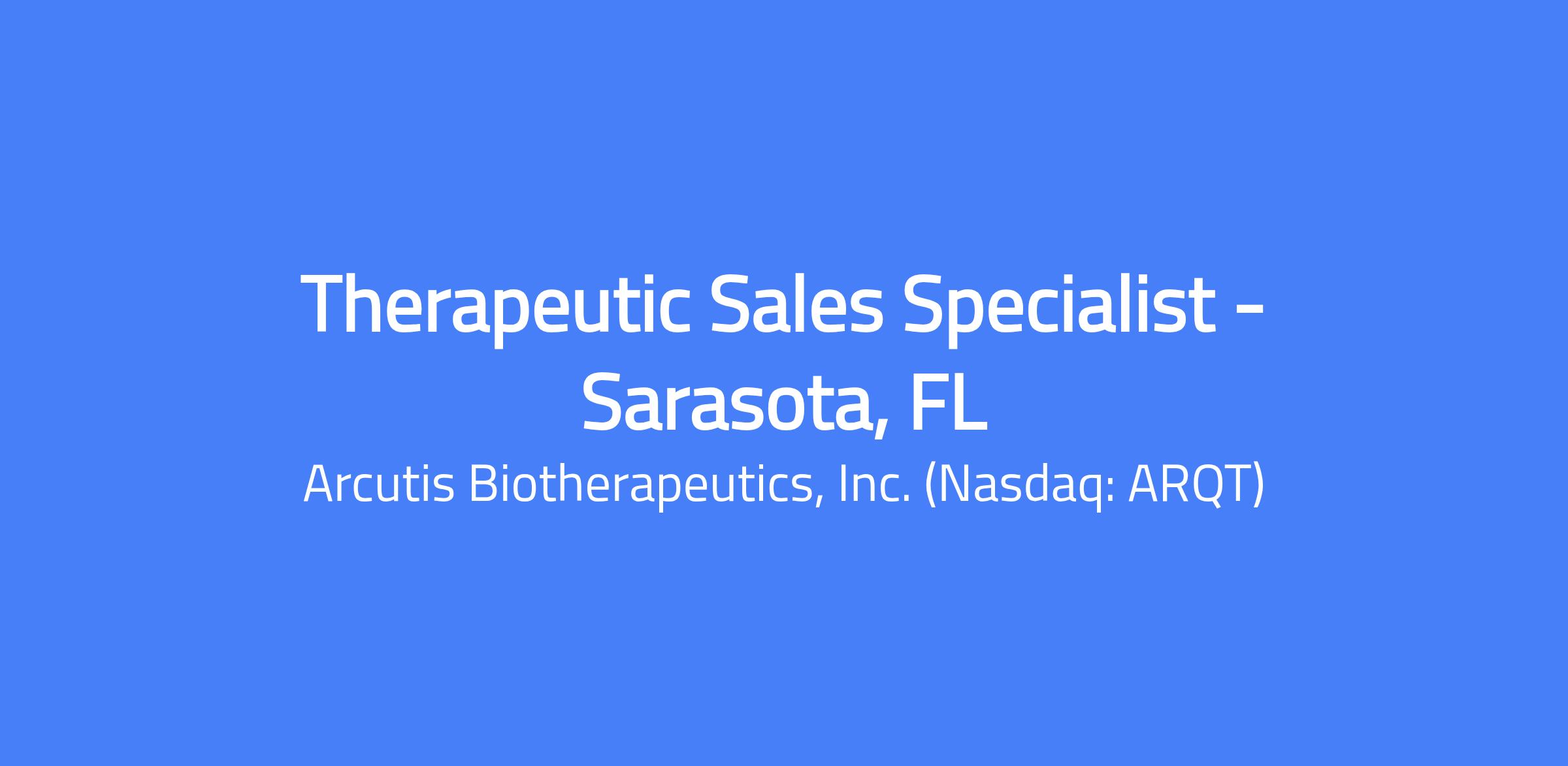 The Therapeutic Sales Specialist (TSS) will play a critical role in the continued promotion and growth of Arcutis products. The TSS will be responsible for promoting, expanding utilization, and driving demand for Arcutis’ dermatology products within targeted specialty physician offices across an individually assigned geography. Location: Sarasota, FL.